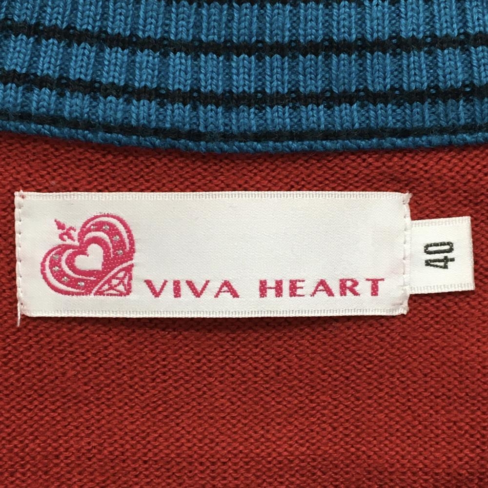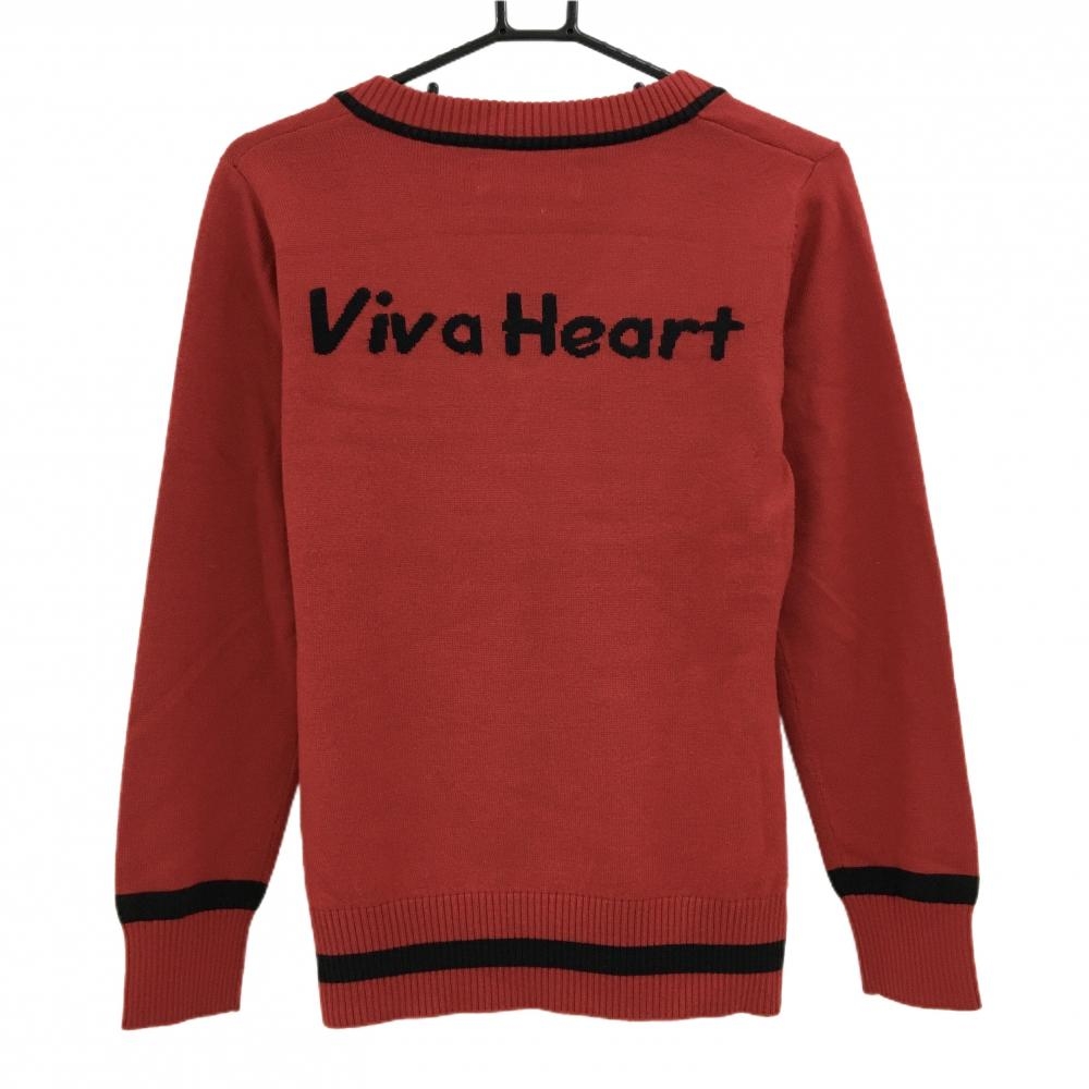 【超美品】ビバハート セーター レッド×黒 ビックロゴ Vネック ウール混 レディース 40(M) ゴルフウェア VIVA HEART