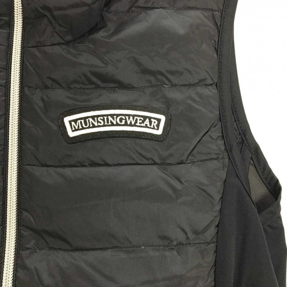マンシングウェア 異素材ダウンベスト 黒×白 ロゴワッペン レディース M ゴルフウェア Munsingwear