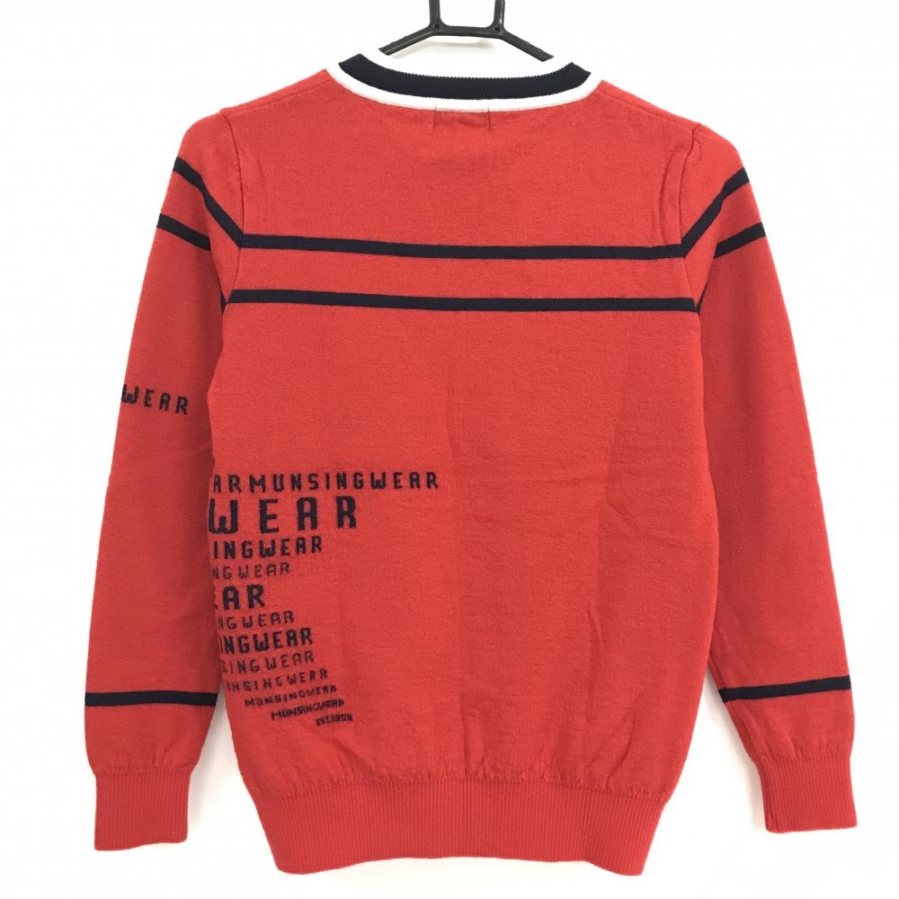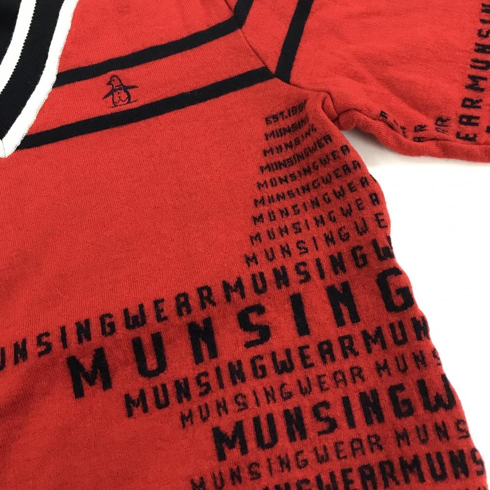 【美品】マンシングウェア セーター レッド×ネイビー Vネック ロゴ レディース M ゴルフウェア Munsingwear