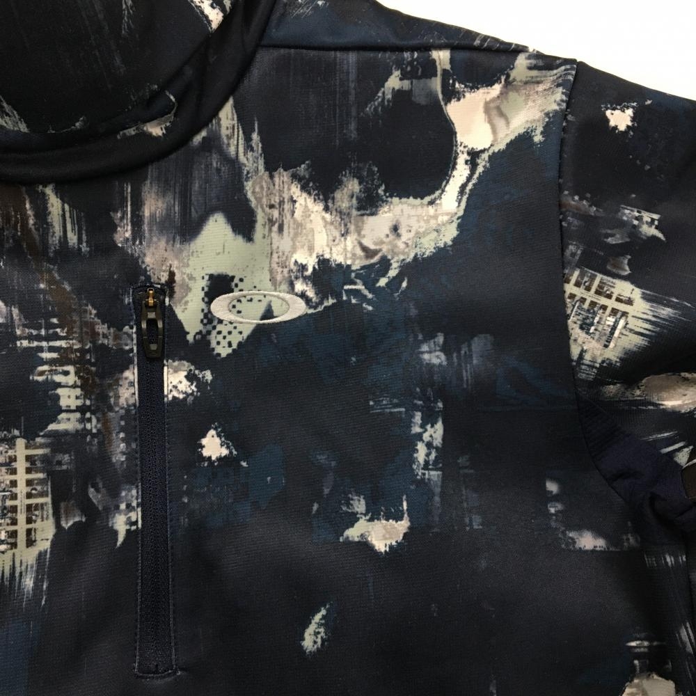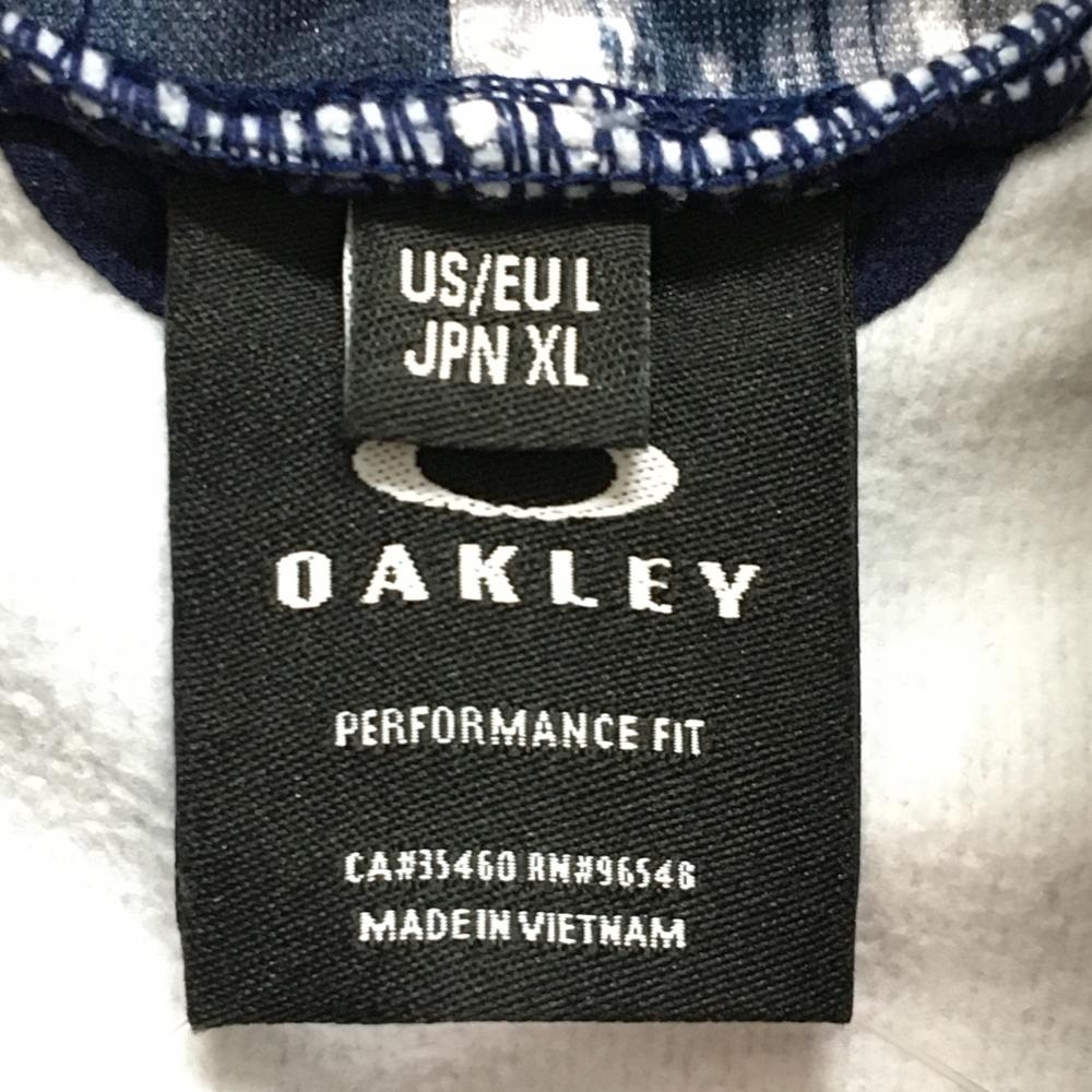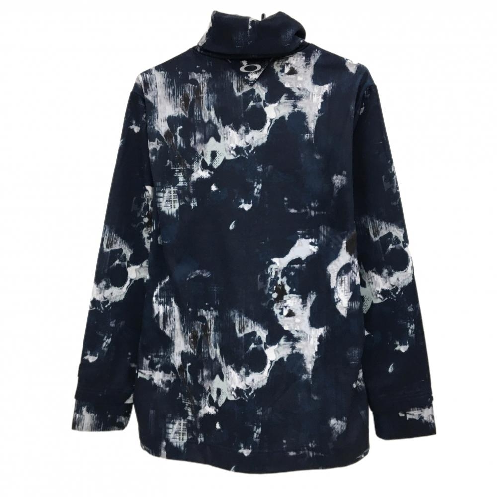 オークリー 長袖タートルネックシャツ ネイビー×白 総柄 裏微起毛 メンズ XL ゴルフウェア Oakley