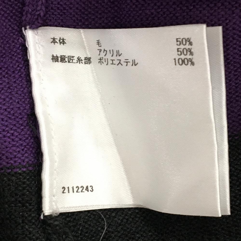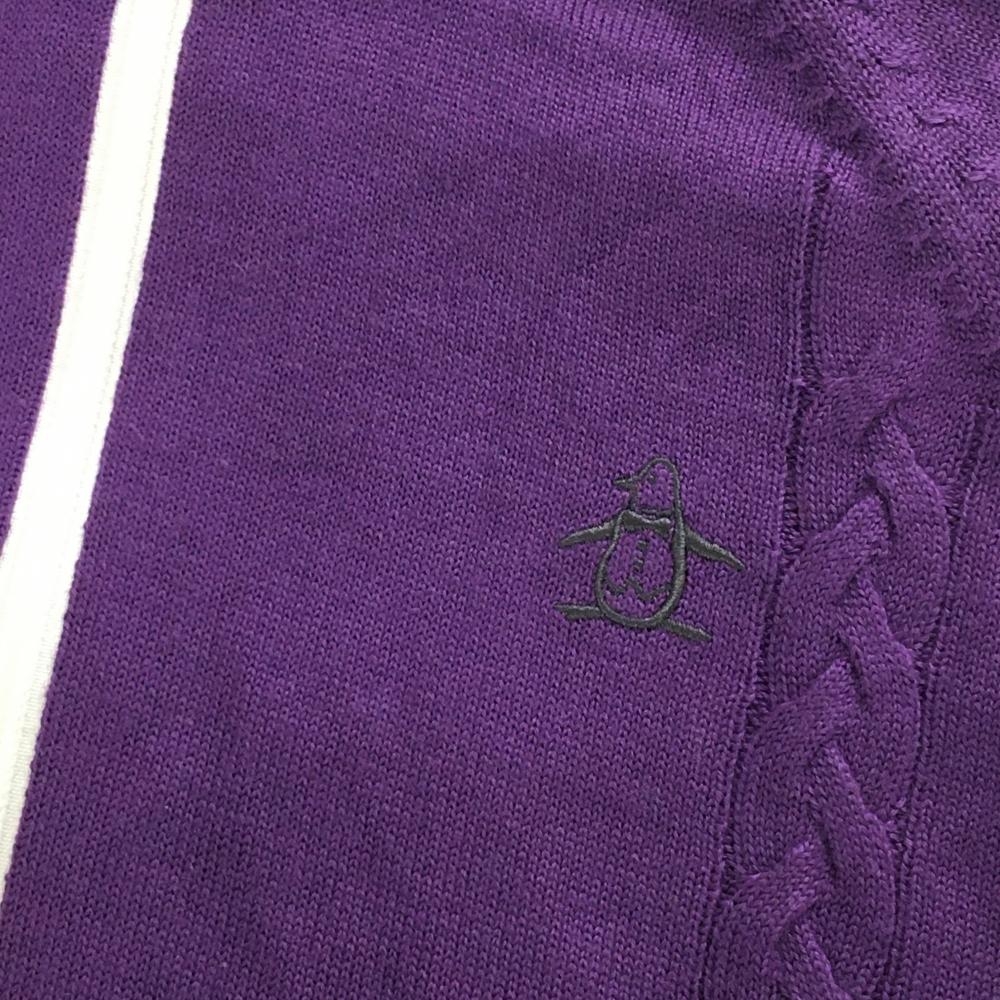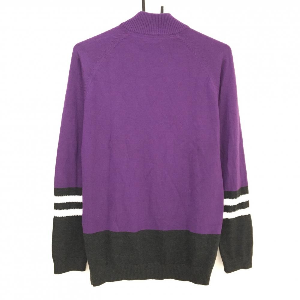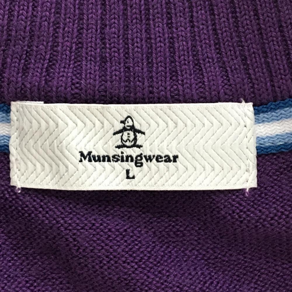 【美品】マンシングウェア ハイネックニットジャケット パープル×ダークグレー 袖ラインボア ウール混 メンズ L ゴルフウェア Munsingwear