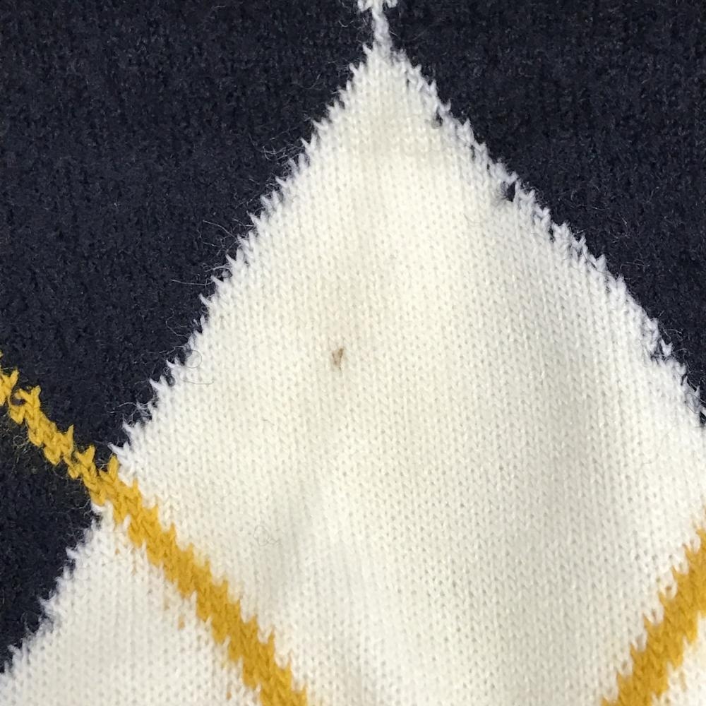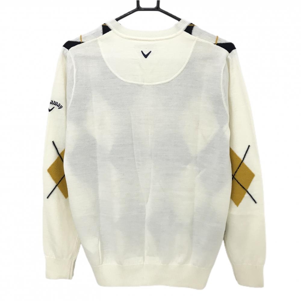 【美品】キャロウェイ セーター アイボリー×黒 アーガイル柄 Vネック ウール混 ニット メンズ M ゴルフウェア Callaway
