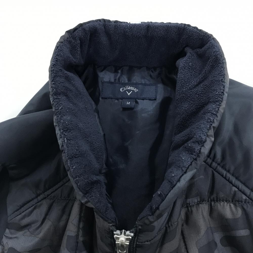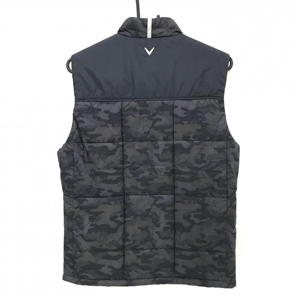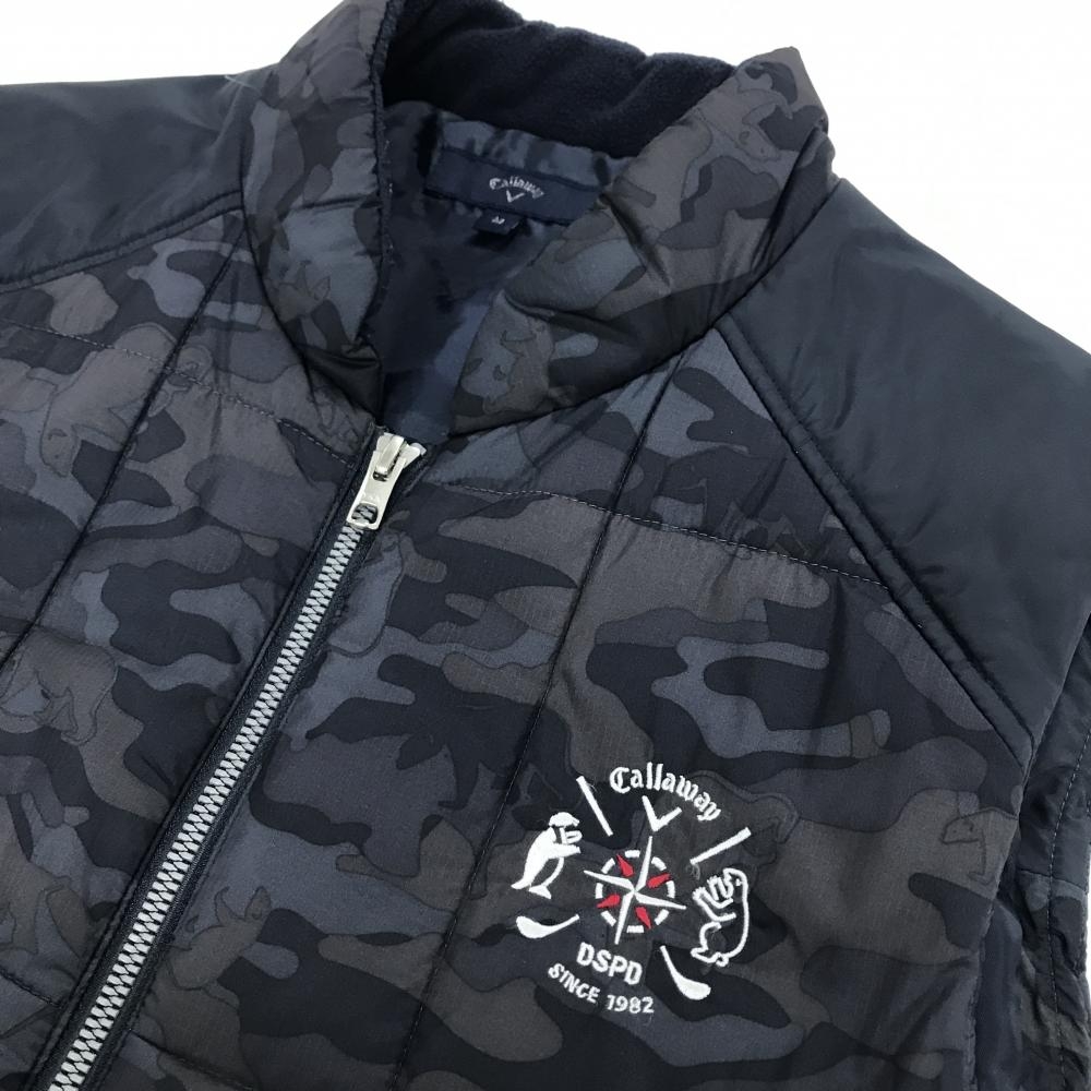 【美品】キャロウェイ 中綿ベスト ネイビー×グレー カモフラ調 白クマ 裾ドローコード メンズ M ゴルフウェア Callaway