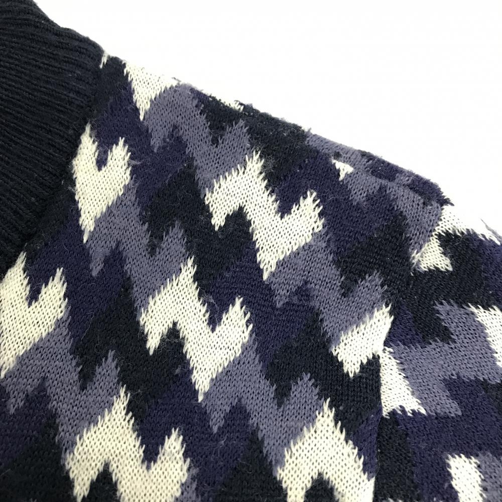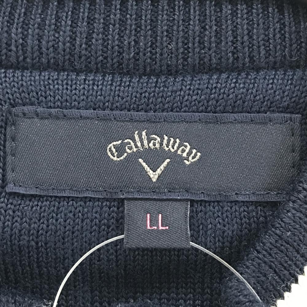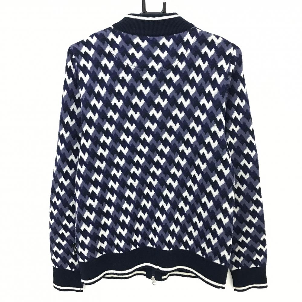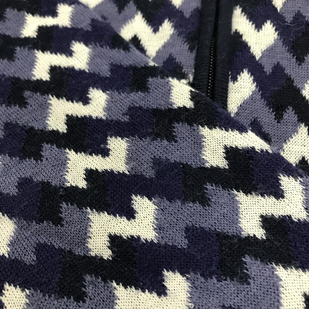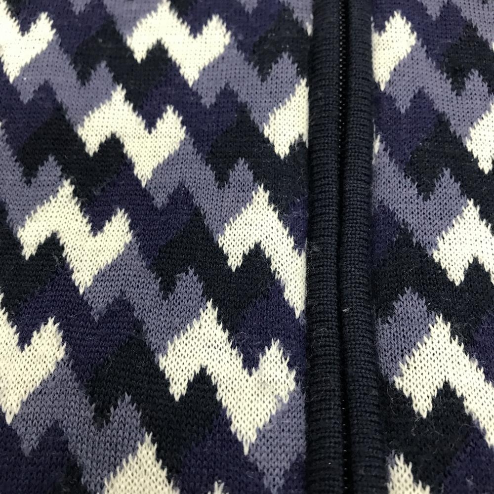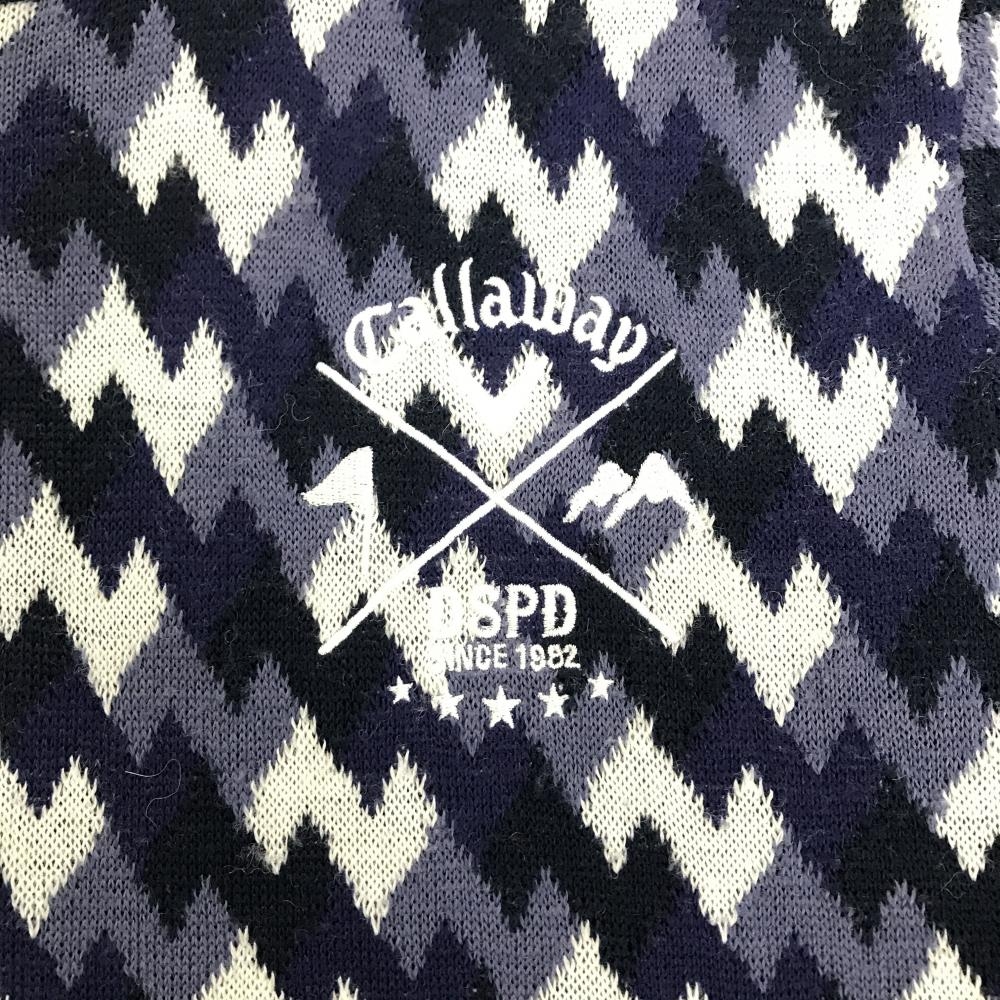キャロウェイ ニットジャケット ネイビー×白 総柄 ウール混 レディース LL ゴルフウェア Callaway