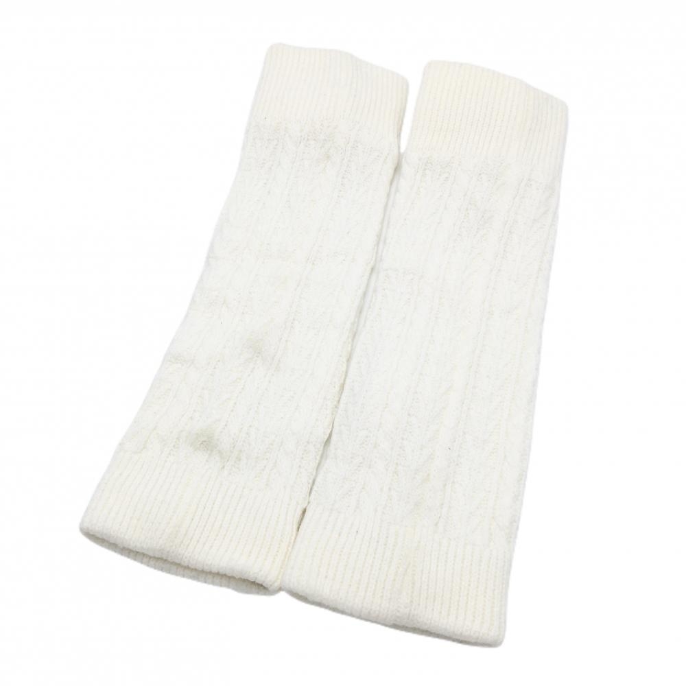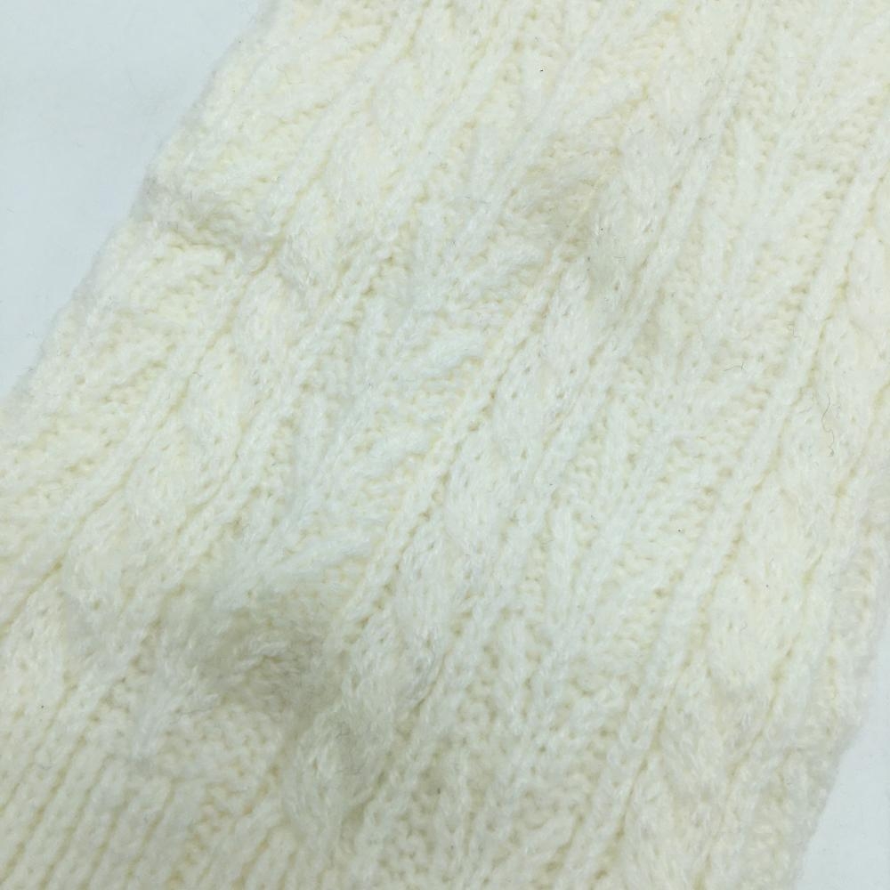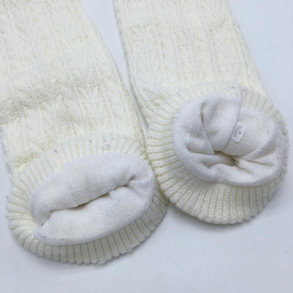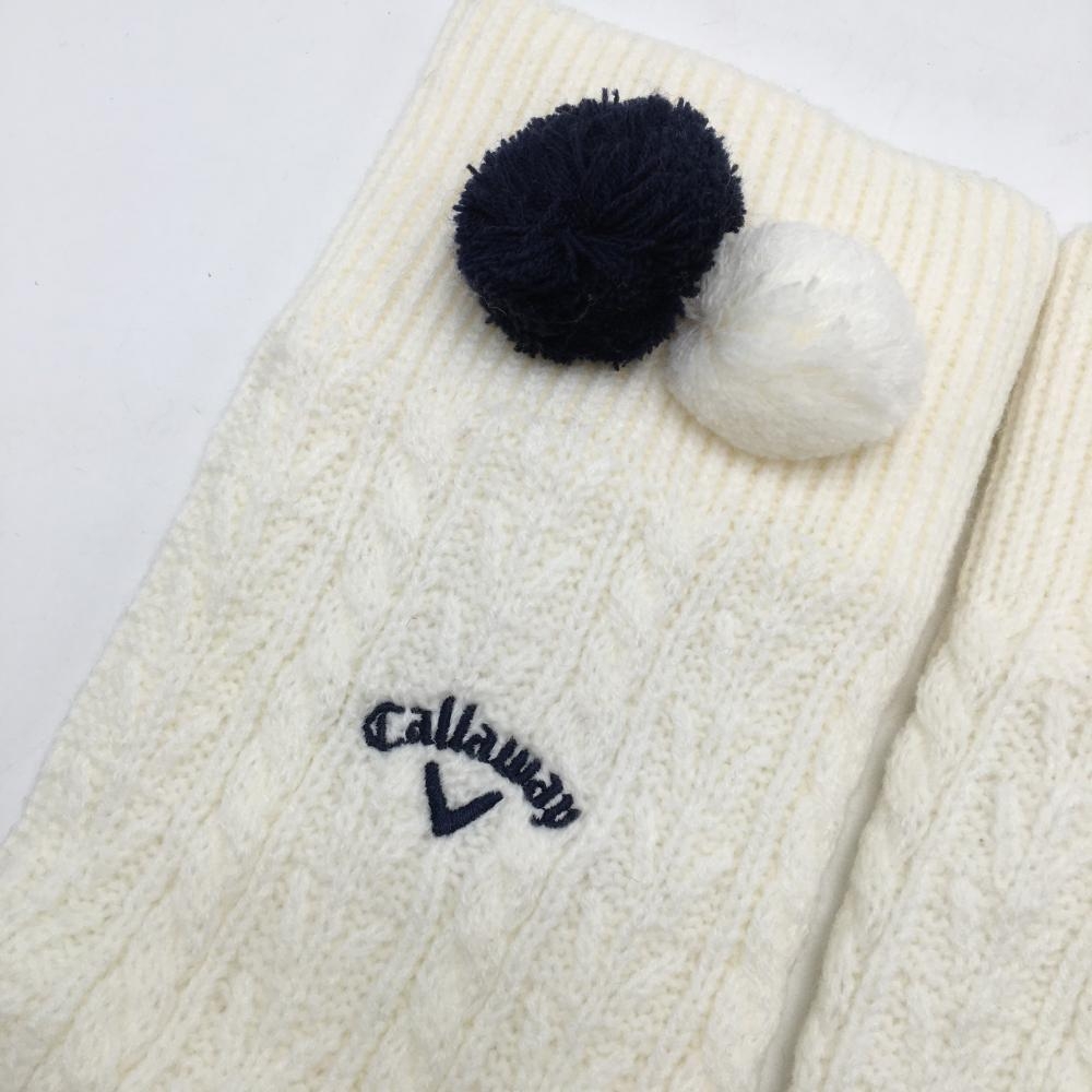 【美品】キャロウェイ ニットレッグウォーマー 白×ネイビー ケーブル編み 裏起毛 ポンポン付 レディース ゴルフウェア Callaway