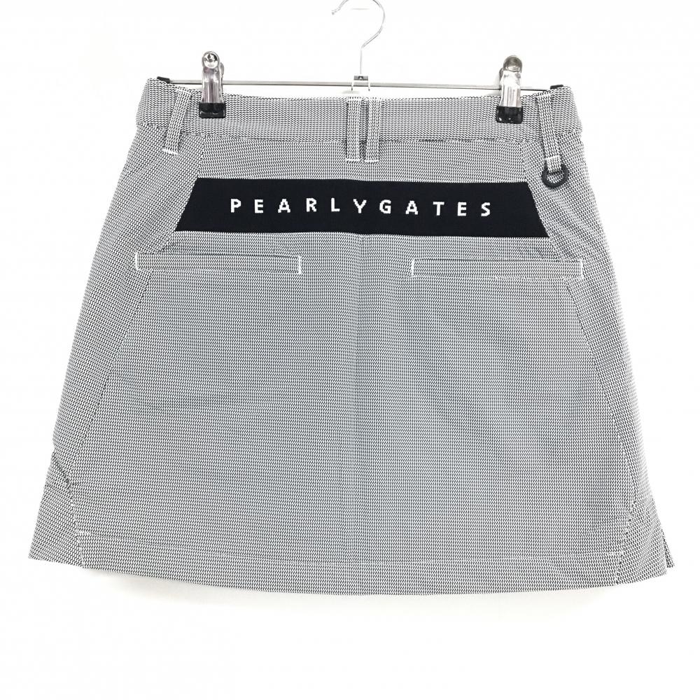 【美品】パーリーゲイツ 中綿スカート 黒×白 総柄 裾一部プリーツ レディース 1(M) ゴルフウェア PEARLY GATES