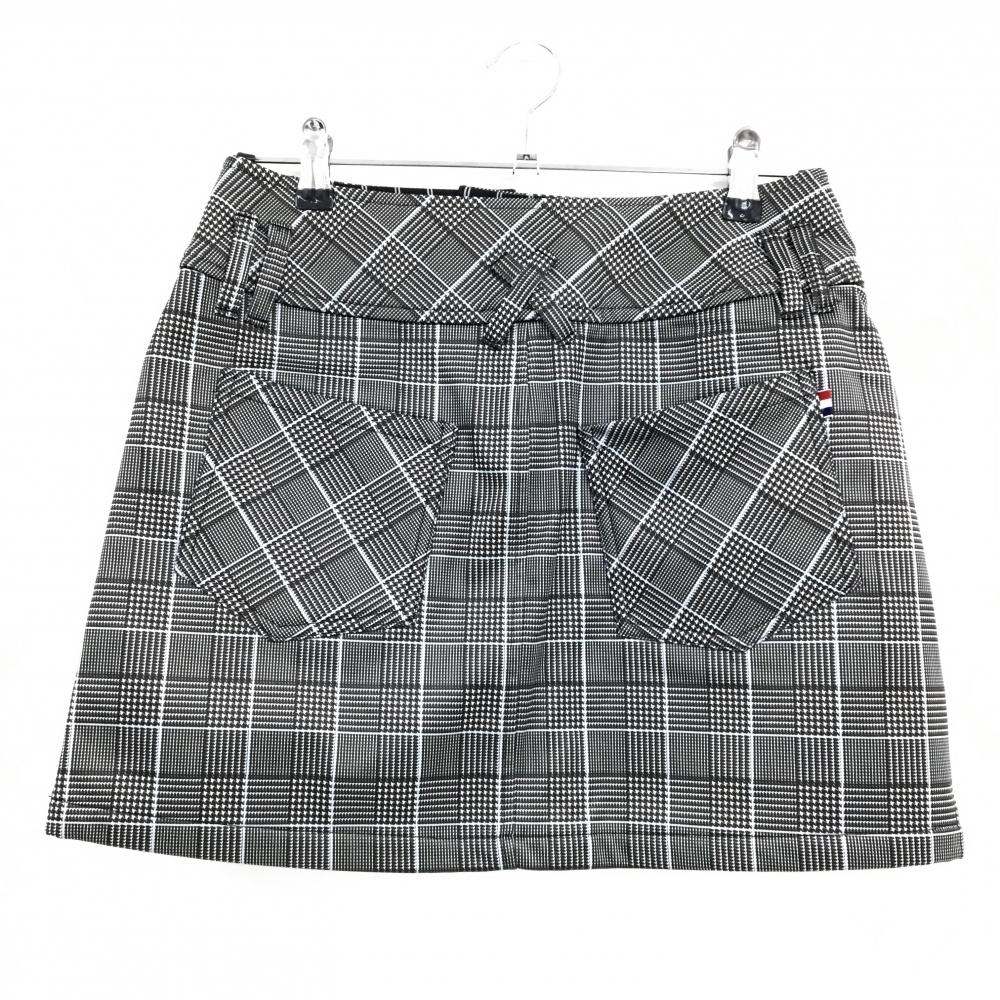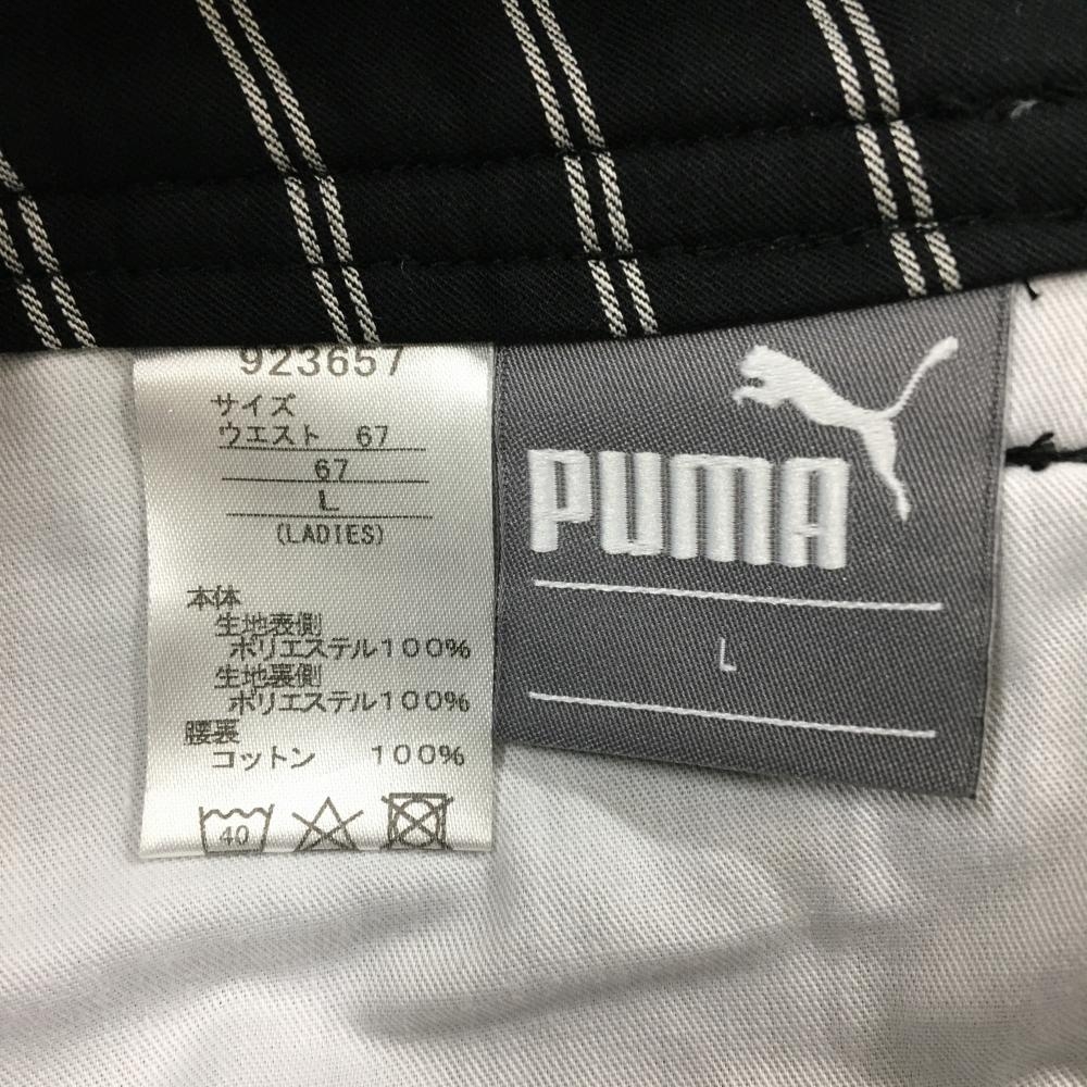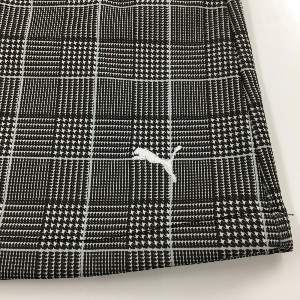 【超美品】プーマ スカート 黒×白 チェック柄 ロゴ刺しゅう 裏起毛 レディース L ゴルフウェア PUMA