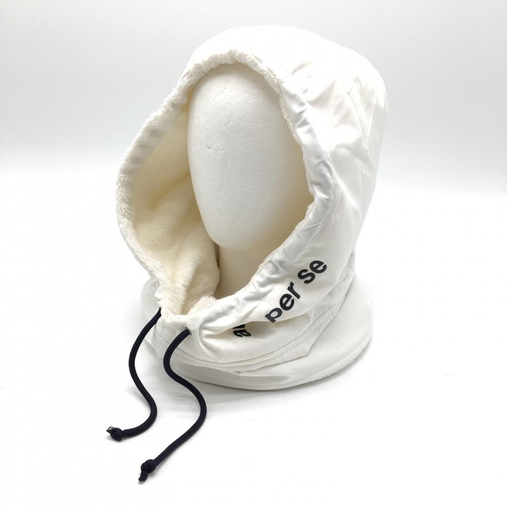 アンパスィ フード付ネックウォーマー 白×ネイビー 裏ボア ゴルフウェア and per se