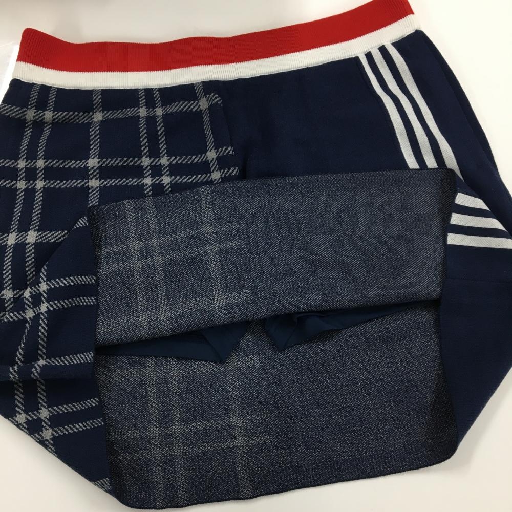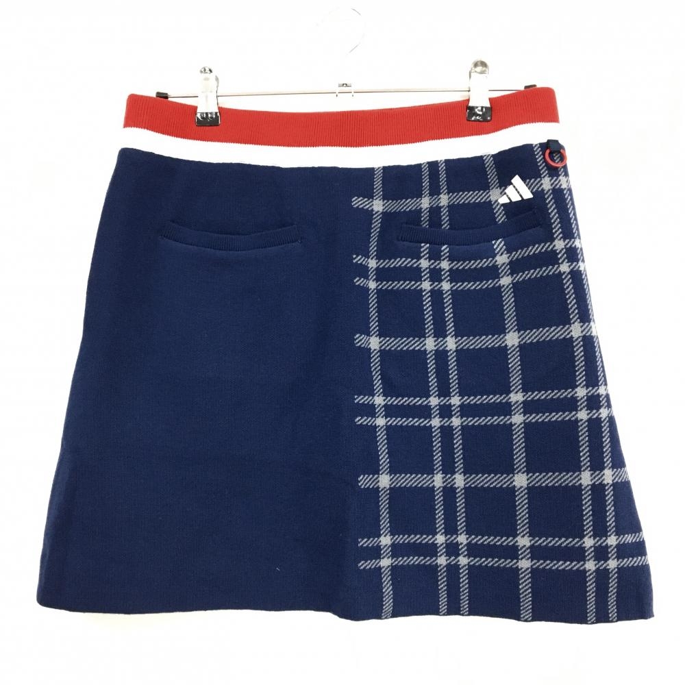 【超美品】アディダス ニットスカート ネイビー×グレー 右チェック 内側インナーパンツ レディース 2XL ゴルフウェア 2024年モデル adidas