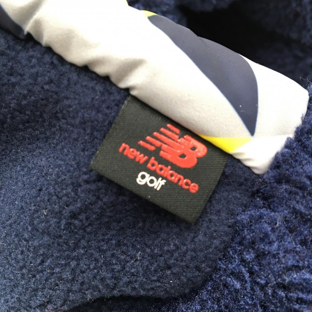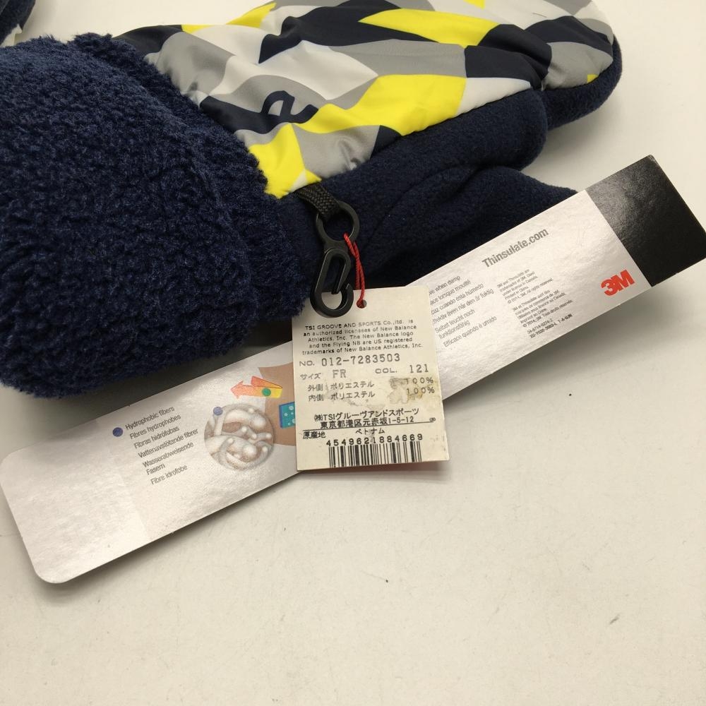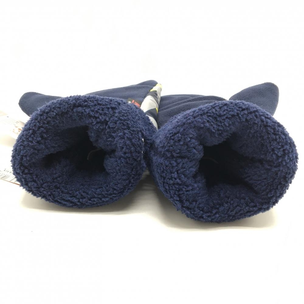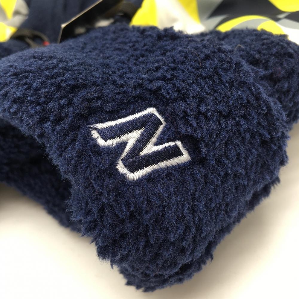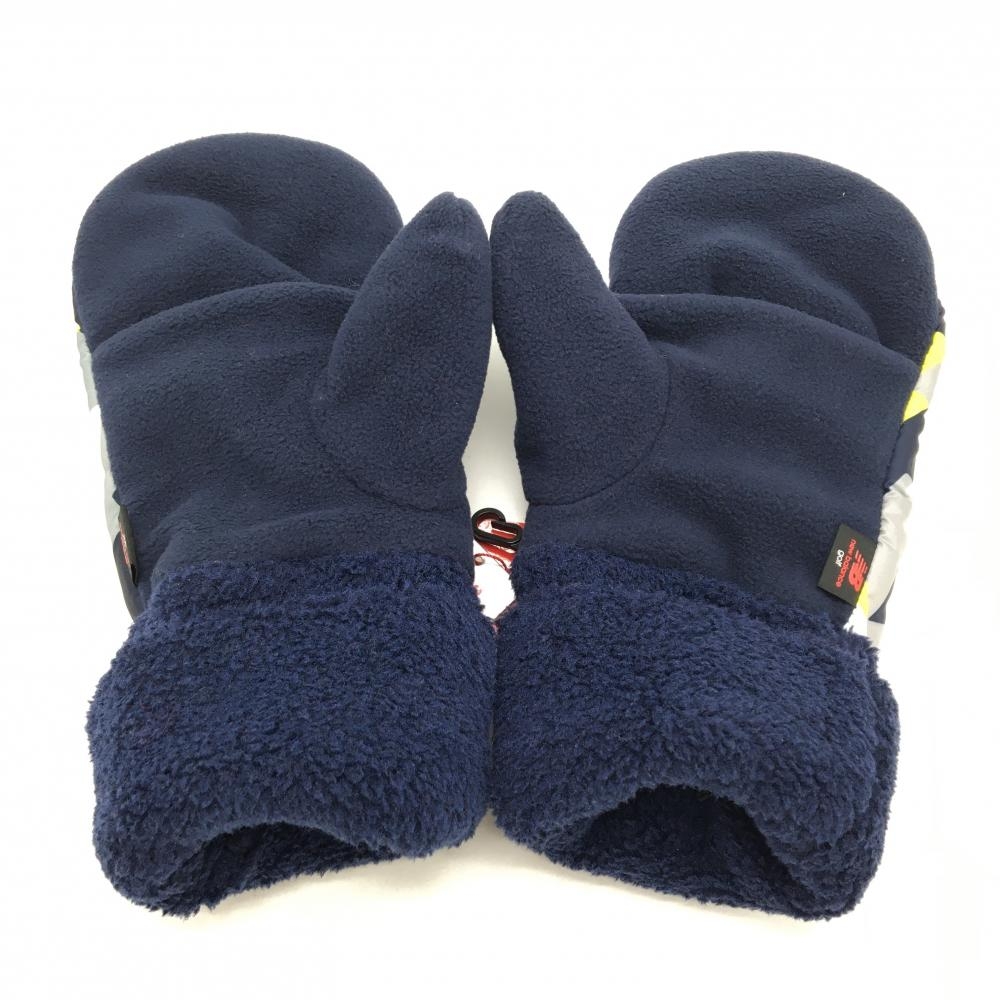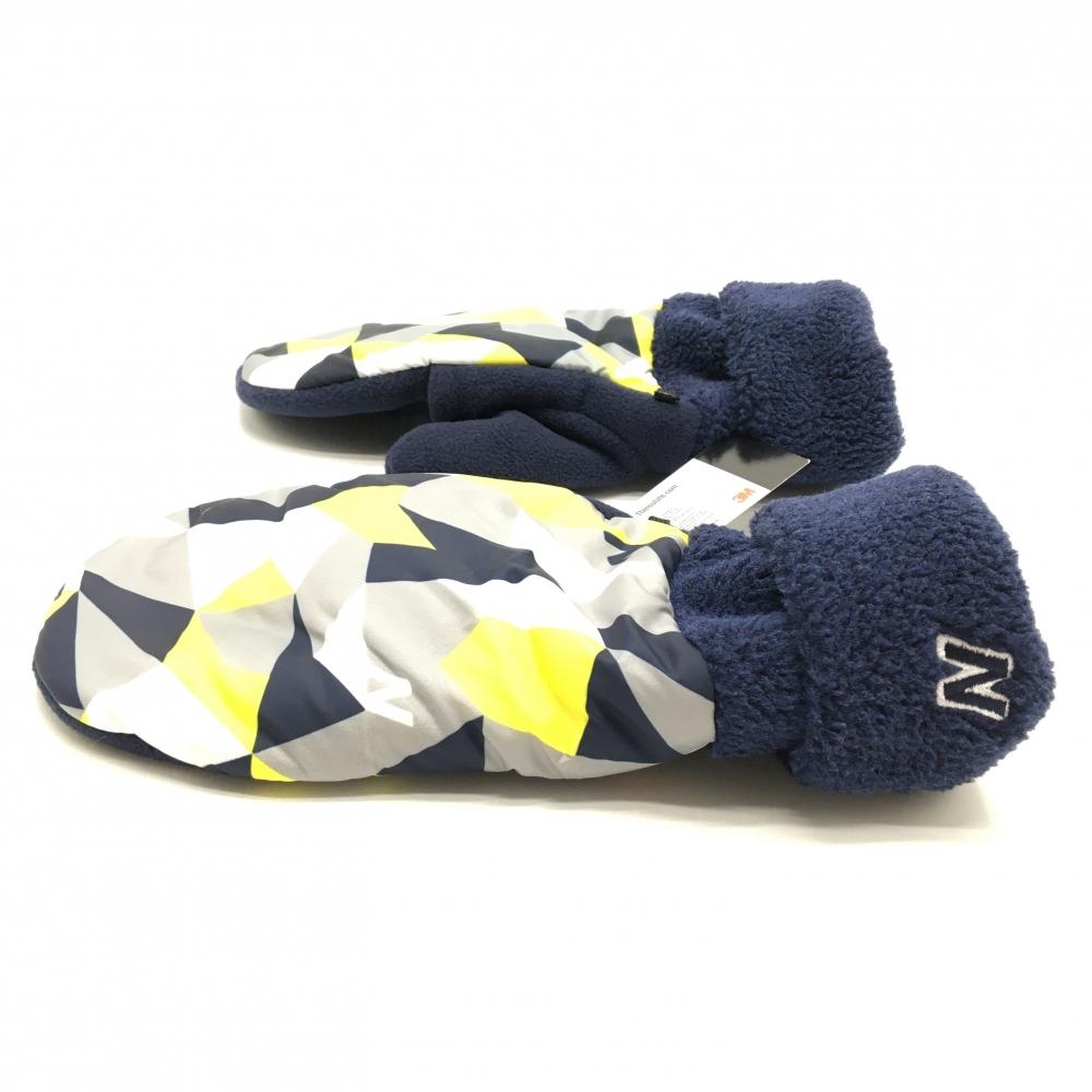 【新品】ニューバランスゴルフ 手袋 ネイビー×イエロー 一部柄 ボア フリース ミトングローブ 両手 メンズ FR ゴルフウェア New Balance