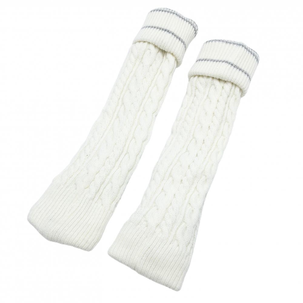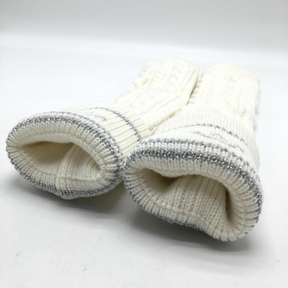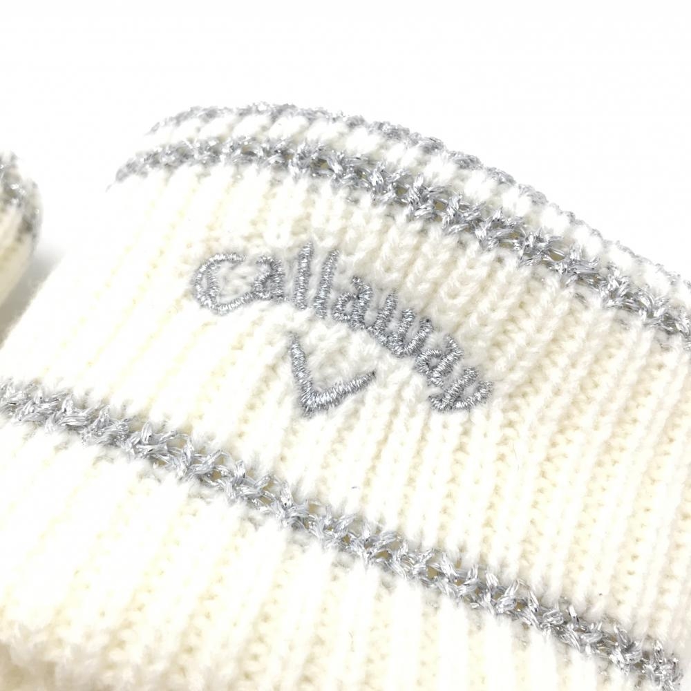 【超美品】キャロウェイ ニットレッグウォーマー 白×シルバー ケーブル編み 裏起毛 レディース ゴルフウェア Callaway