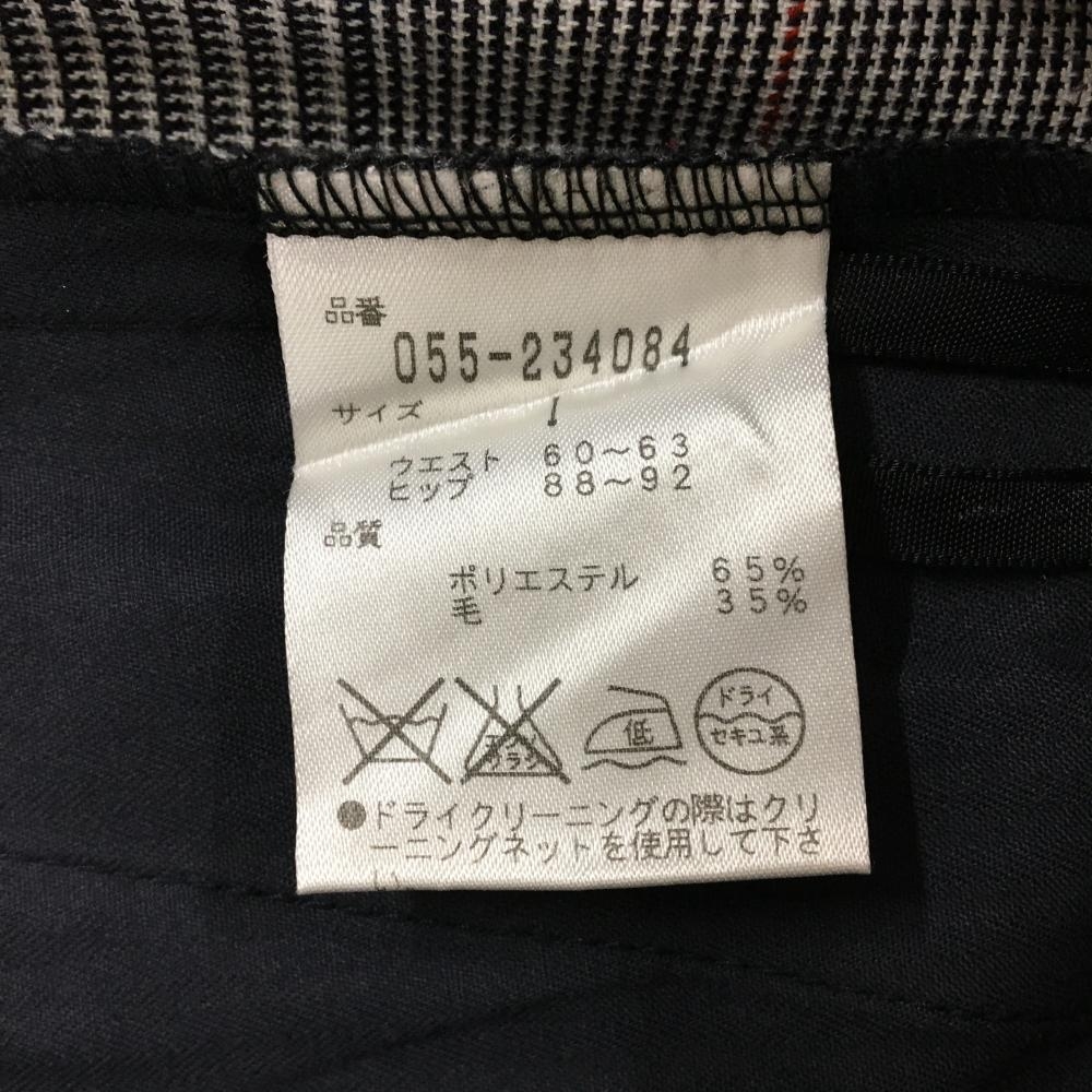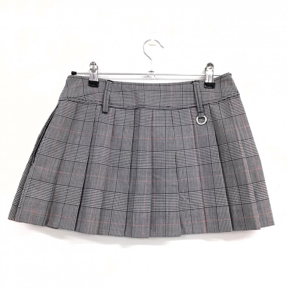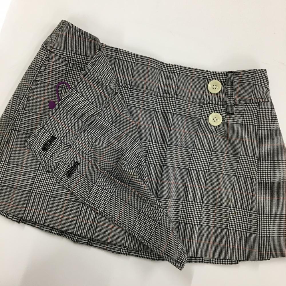 パーリーゲイツ ラップスカート 白×黒×レッド グレンチェック 後ろプリーツ ウール混 レディース 1(M) ゴルフウェア PEARLY GATES