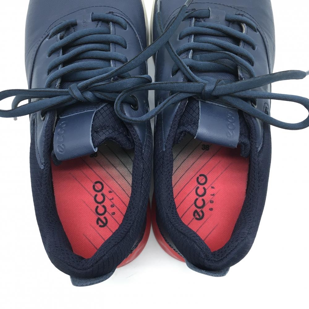 【美品】エコー ゴルフシューズ ネイビー×レッド系 ECCO Golf S Three 10296360620 スパイクレス レディース 24.0 ゴルフウェア ECCO