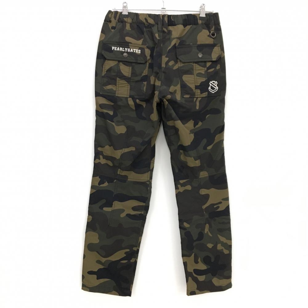 【美品】パーリーゲイツ パンツ カーキ×黒 カモフラ 迷彩 メッシュ調裏地 ウエストドローコード メンズ 5(L) ゴルフウェア PEARLY GATES