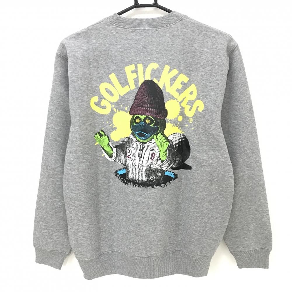 【新品】ゴルフィッカーズ トレーナー 杢グレー 後ビッグプリント 裏起毛 紙タグ付 メンズ M ゴルフウェア Golfickers