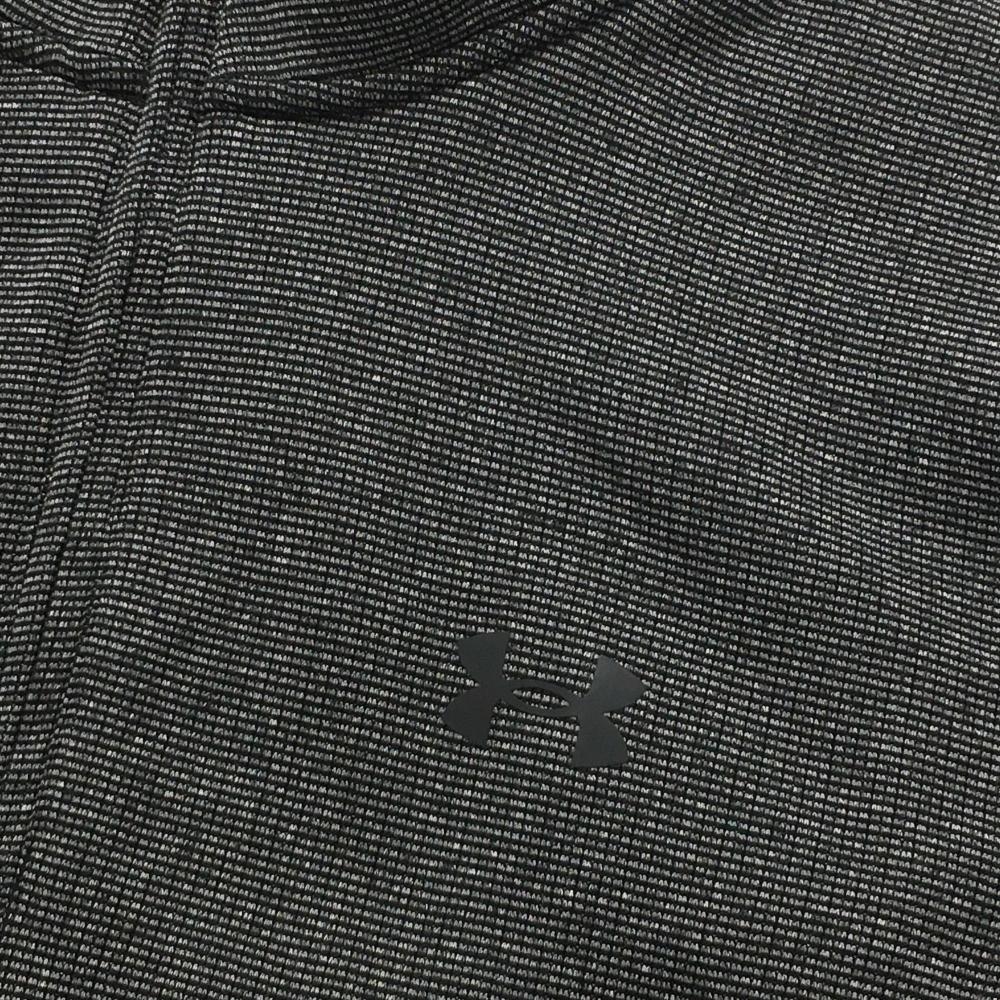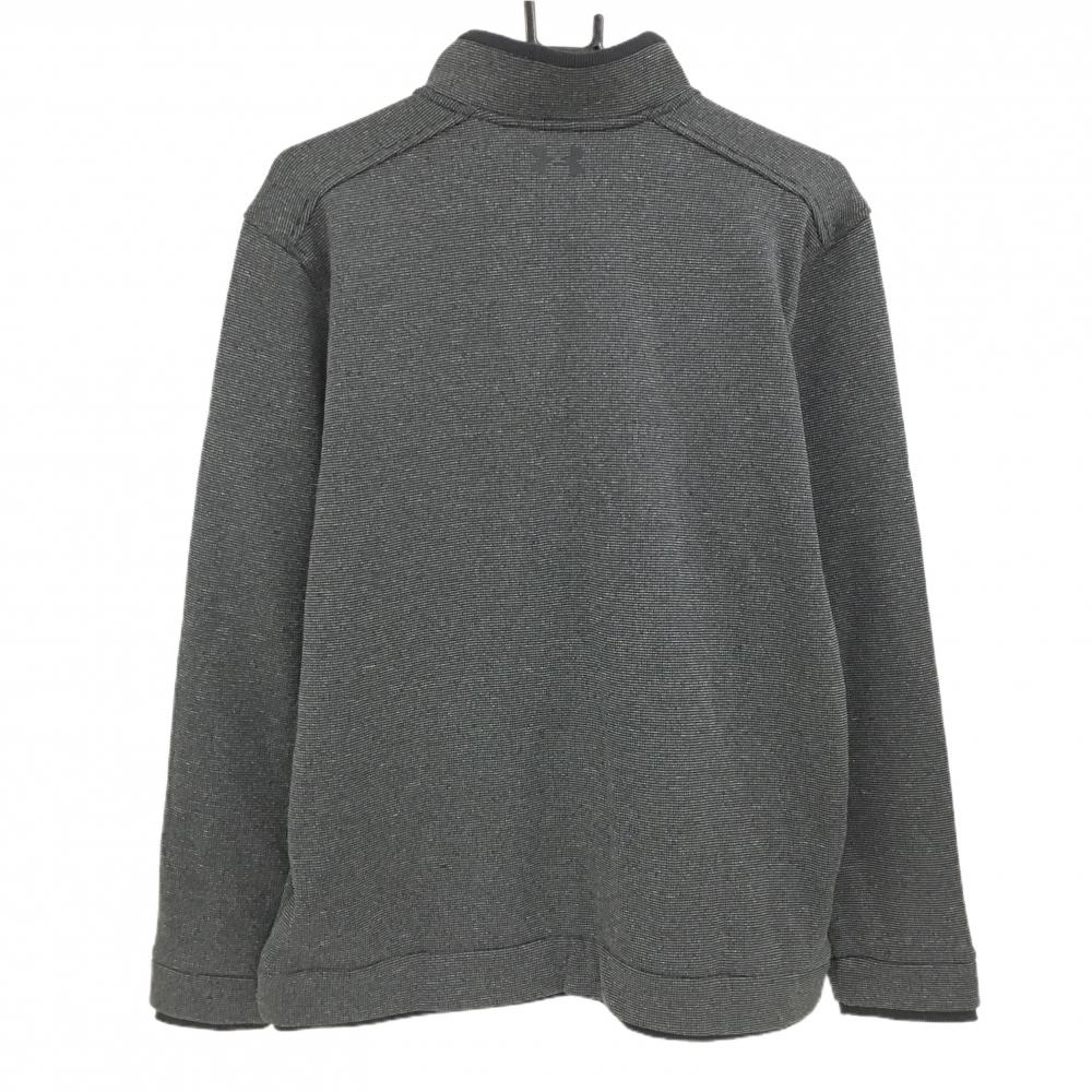 【超美品】アンダーアーマー ハイネックブルゾン 杢グレー×黒 細ボーダー 裏起毛 ハーフジップ メンズ LG/G/G ゴルフウェア UNDER ARMOUR