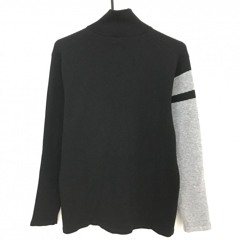 【美品】デサントゴルフ ハイネックセーター 黒×グレー ハーフジップ 肩ロゴ ウール混 ニット メンズ L ゴルフウェア DESCENTE