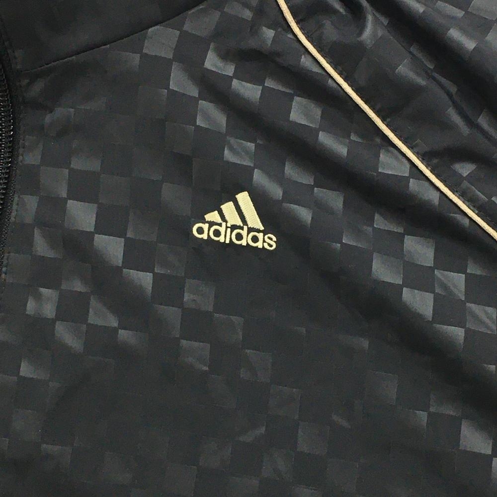 【新品】アディダス ジャケット 黒 ブロックチェック地模様 ロゴゴールド 蓄熱裏地 メンズ M/M ゴルフウェア adidas