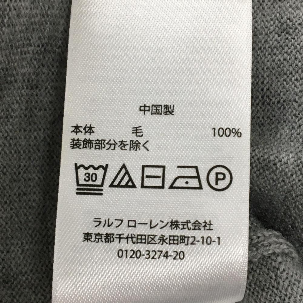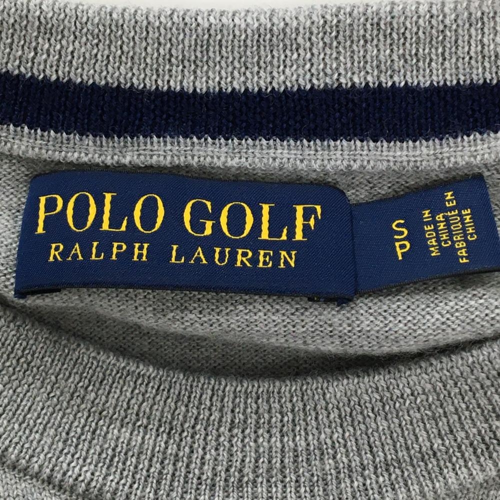 【美品】ポロゴルフ セーター グレー ロゴネイビー ウール100% ニット メンズ S ゴルフウェア Ralph Lauren