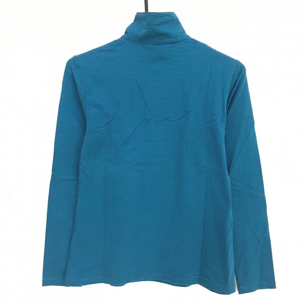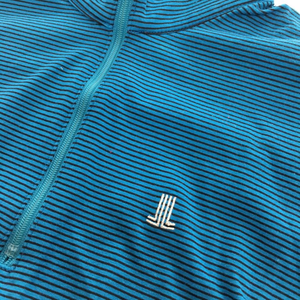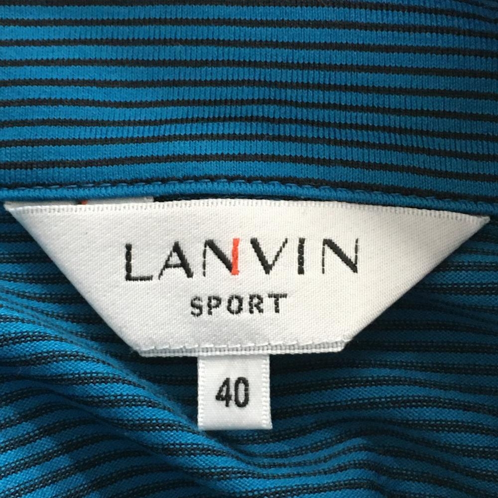 【超美品】ランバンスポール 長袖ハイネックシャツ ブルー×黒 ボーダー ハーフジップ レディース 40(L) ゴルフウェア LANVIN SPORT