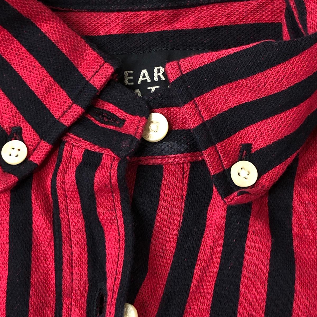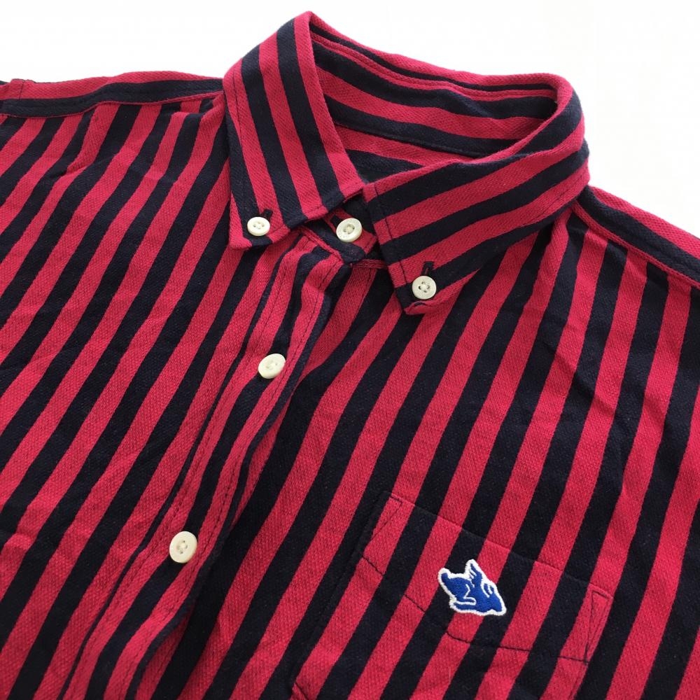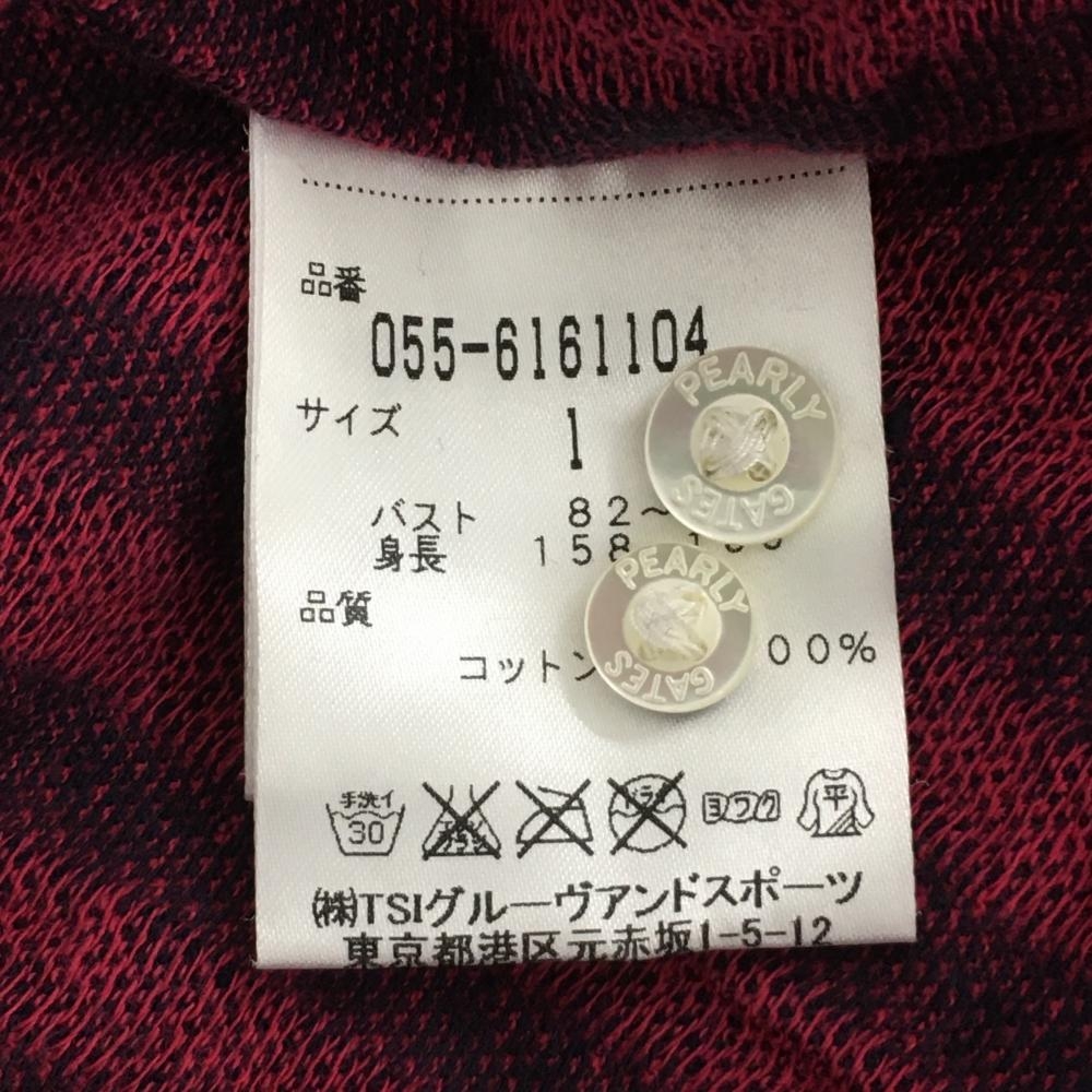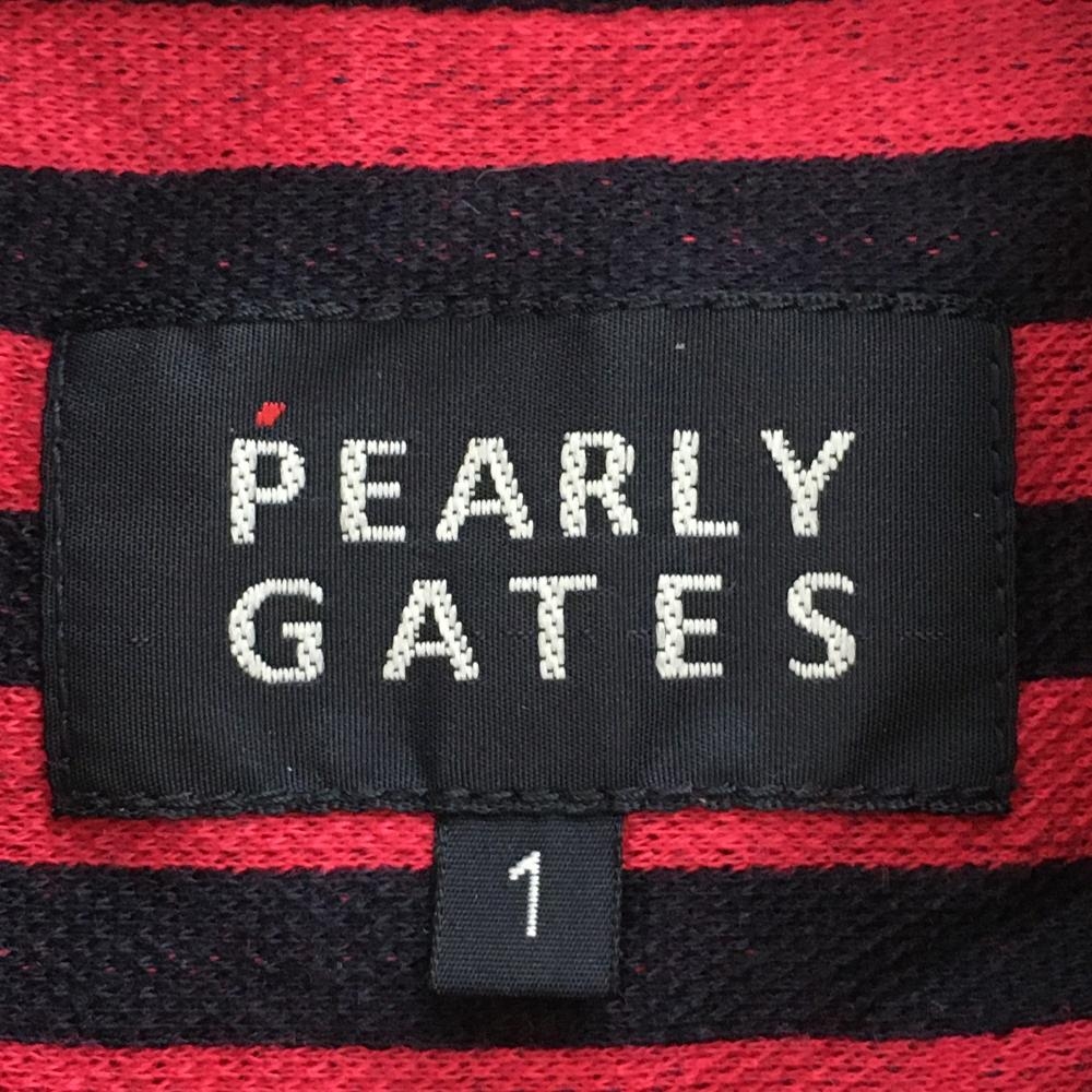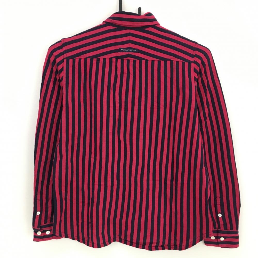 【美品】パーリーゲイツ 長袖シャツ ピンク×ネイビー ストライプ ボタンダウン レディース 1(M) ゴルフウェア PEARLY GATES