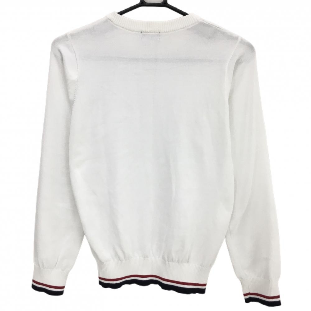 【美品】パーセッタンタドゥエ セーター 白×ネイビー 一部ケーブル編み ワッペン ニット レディース M ゴルフウェア PAR72