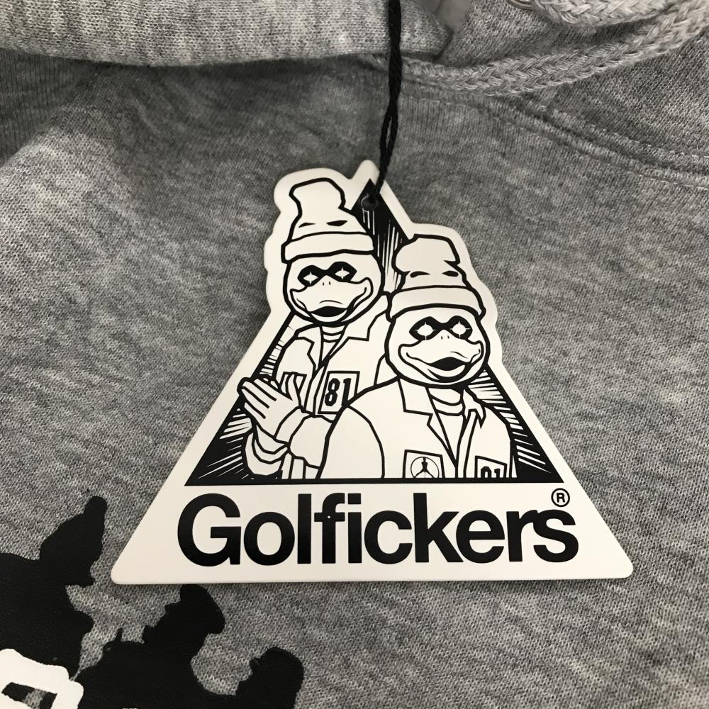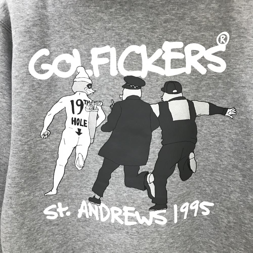 【新品】ゴルフィッカーズ パーカー 杢グレー 裏起毛 後ビッグプリントトレーナー メンズ M ゴルフウェア Golfickers