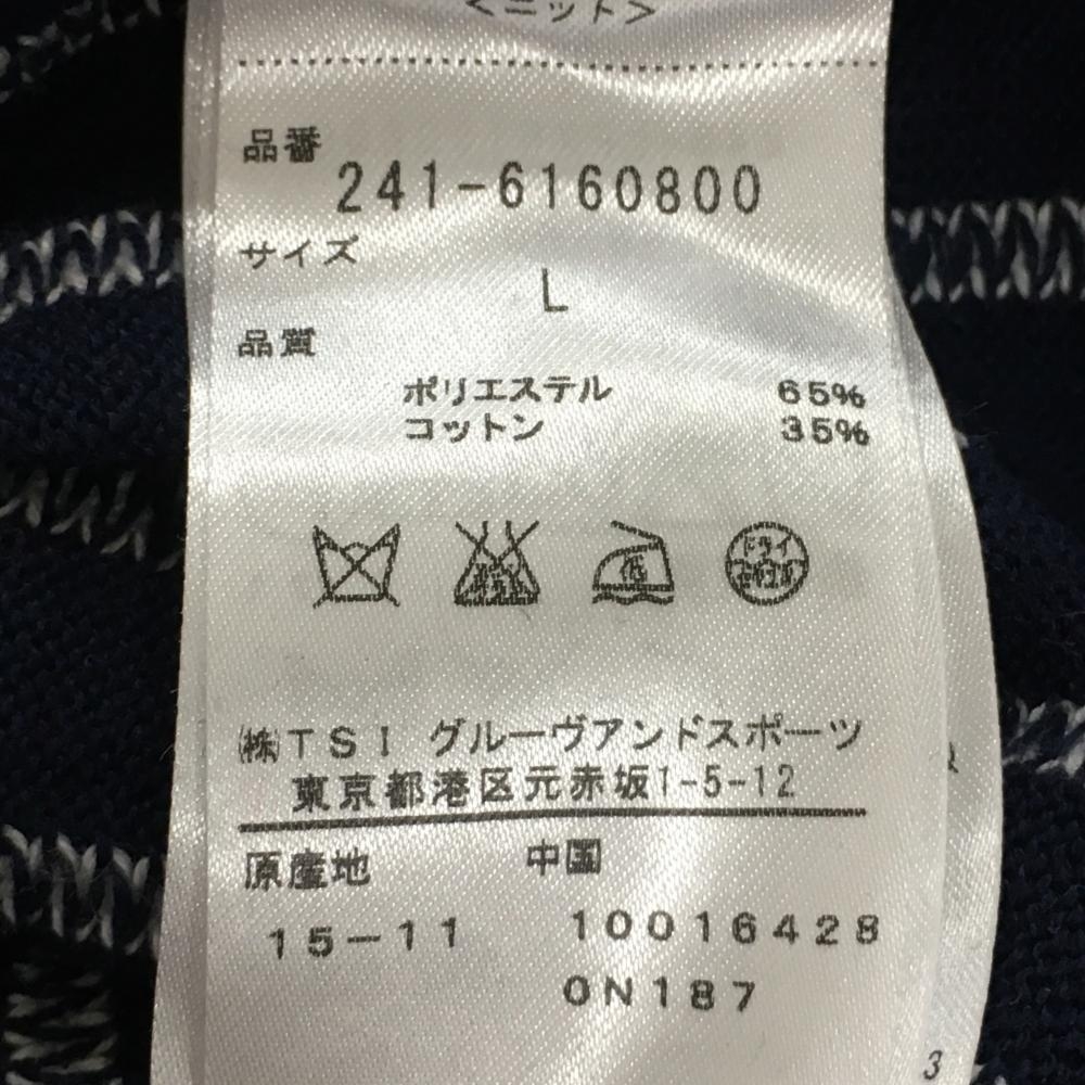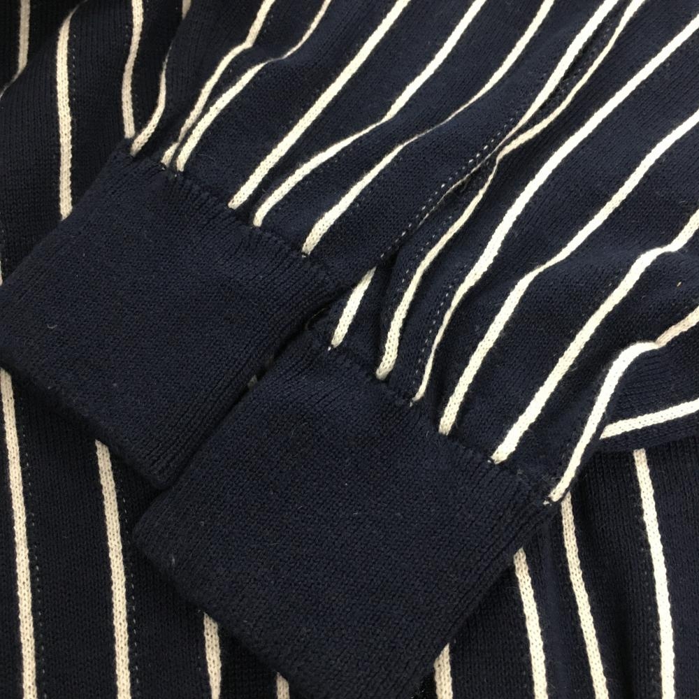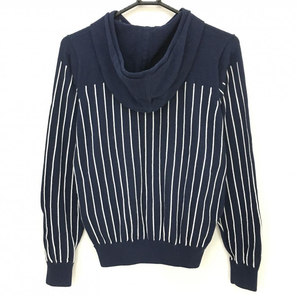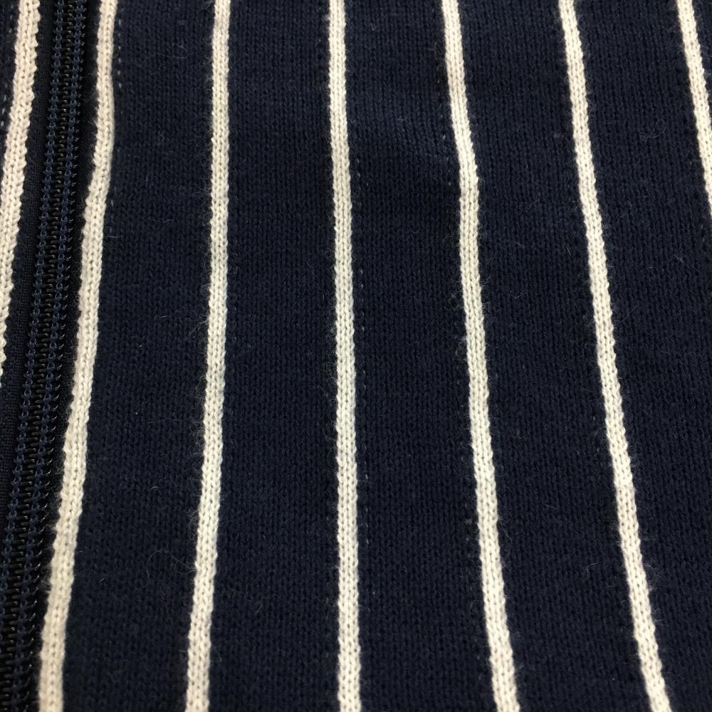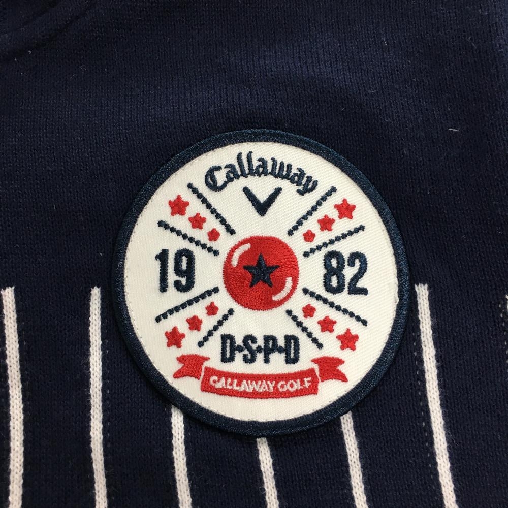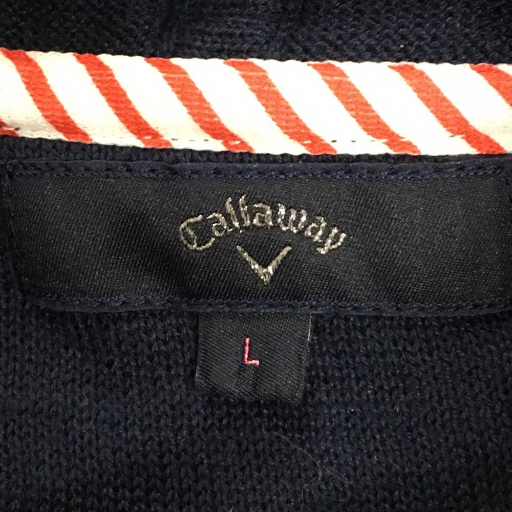 【美品】キャロウェイ ニットジップパーカー ネイビー×白 ストライプ 胸ワッペン レディース L ゴルフウェア Callaway