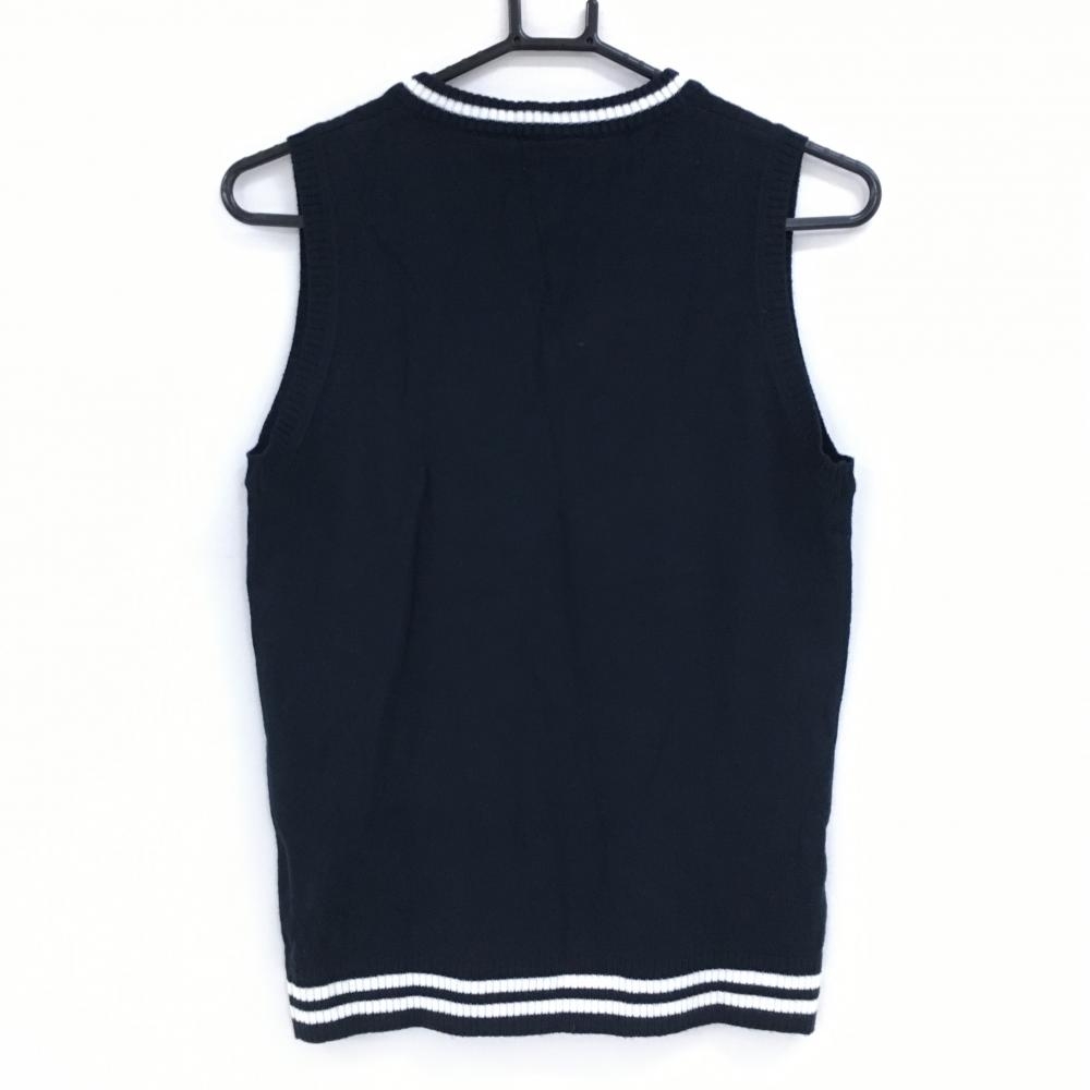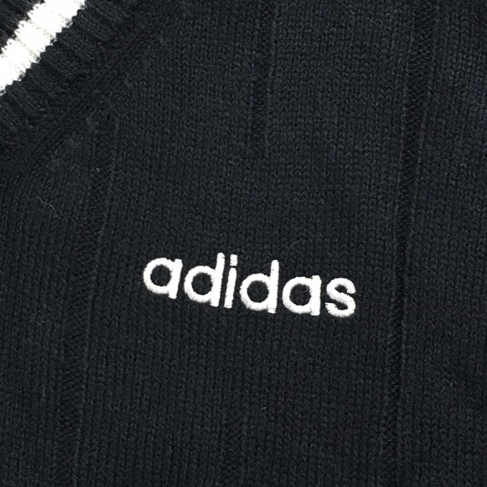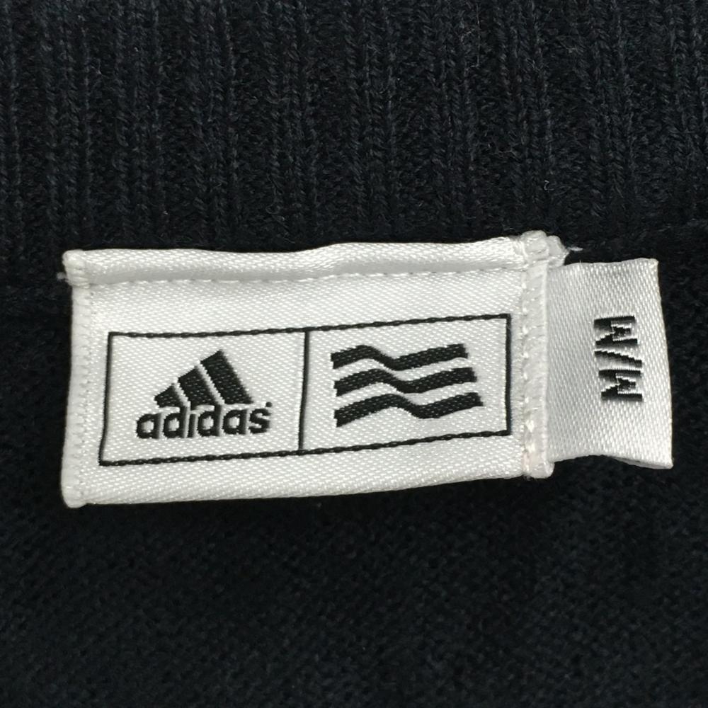 【美品】アディダス ニットベスト 黒 前ストライプ織生地 ロゴ白 レディース M/M ゴルフウェア adidas