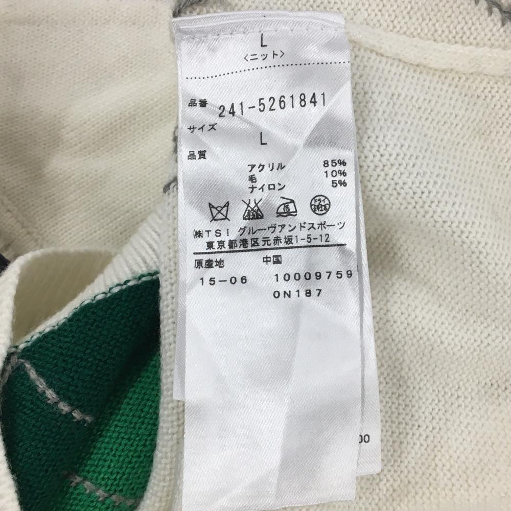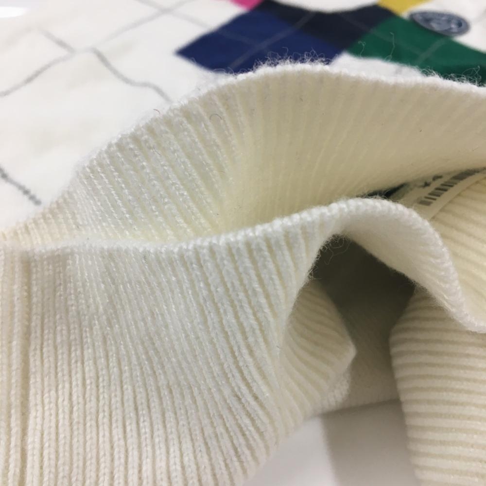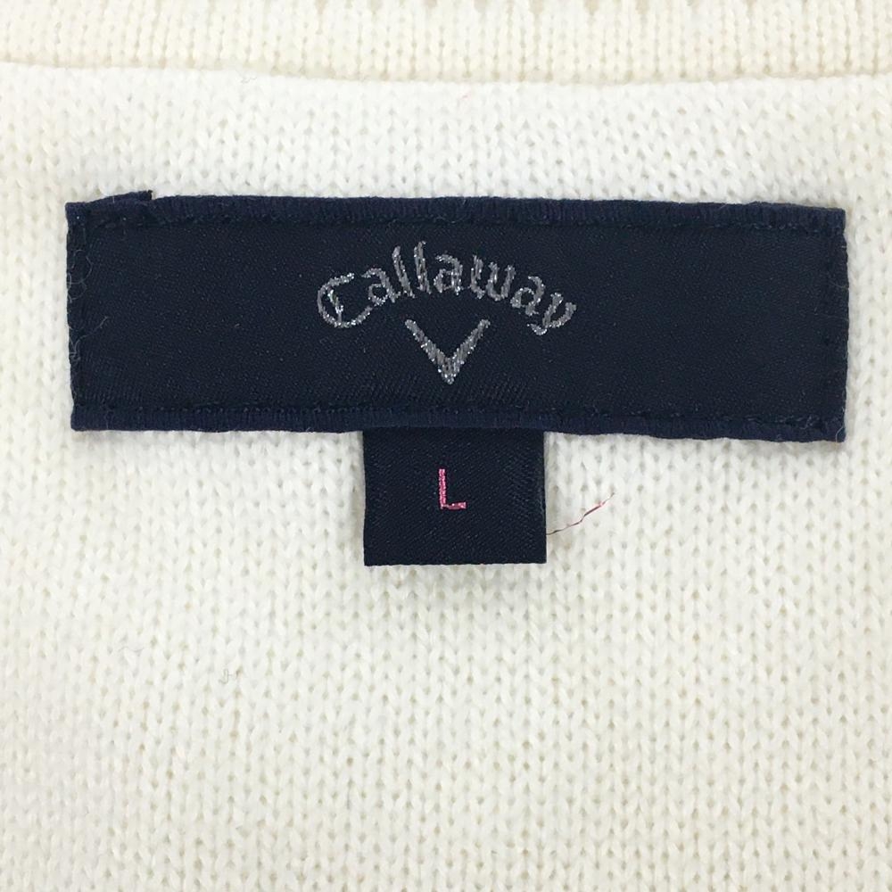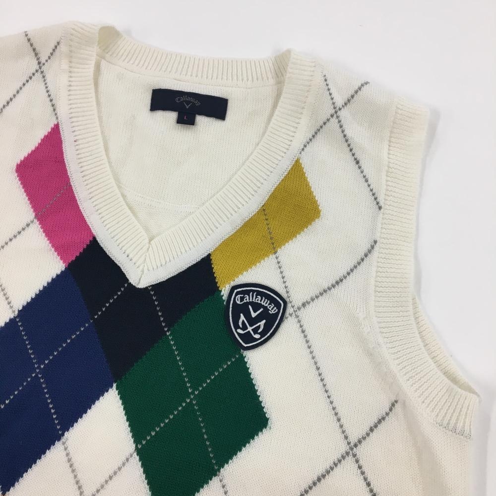 【美品】キャロウェイ ニットベスト 白×マルチカラー 一部アーガイル柄 ロゴワッペン レディース L ゴルフウェア Callaway