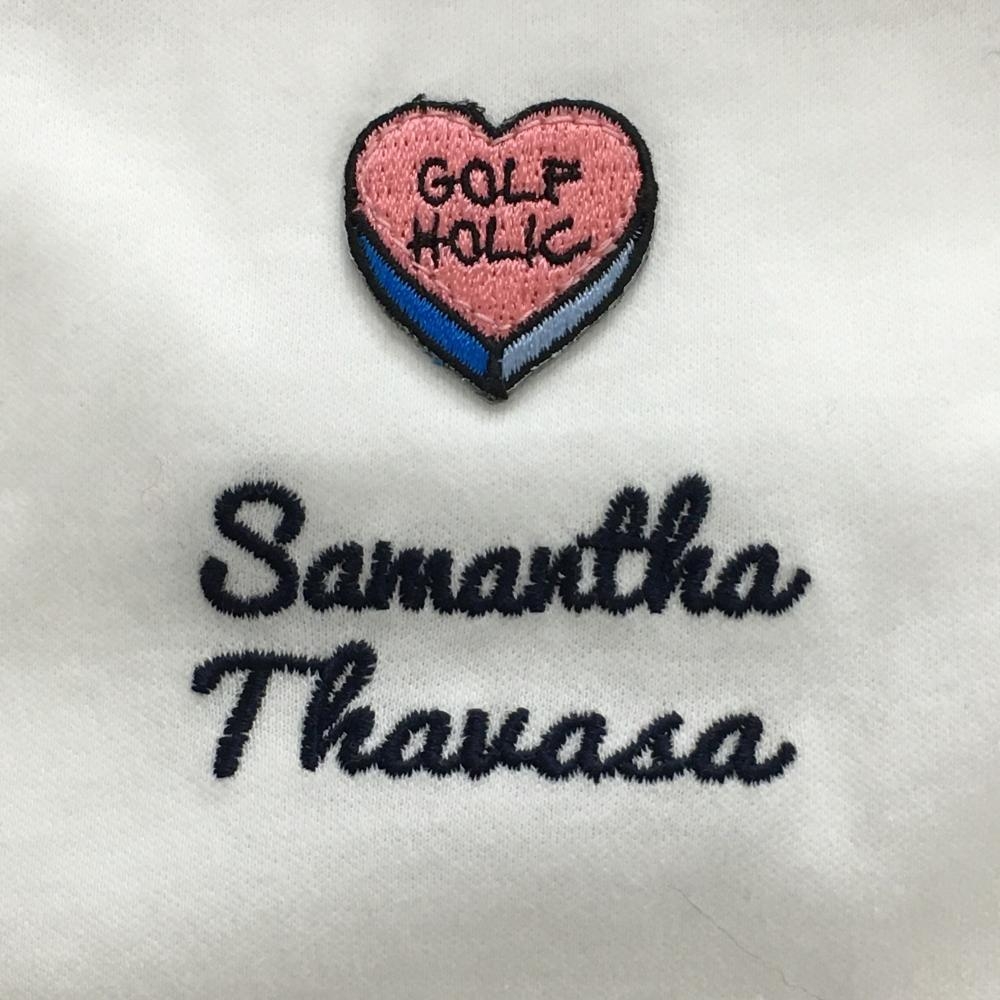 【新品】サマンサタバサUNDER25 長袖ポロシャツ 白 襟裏ロゴ総柄 ハート レディース M ゴルフウェア Samantha Thavasa
