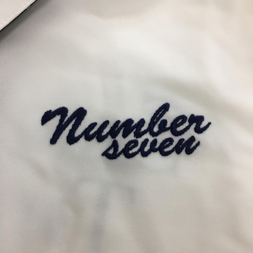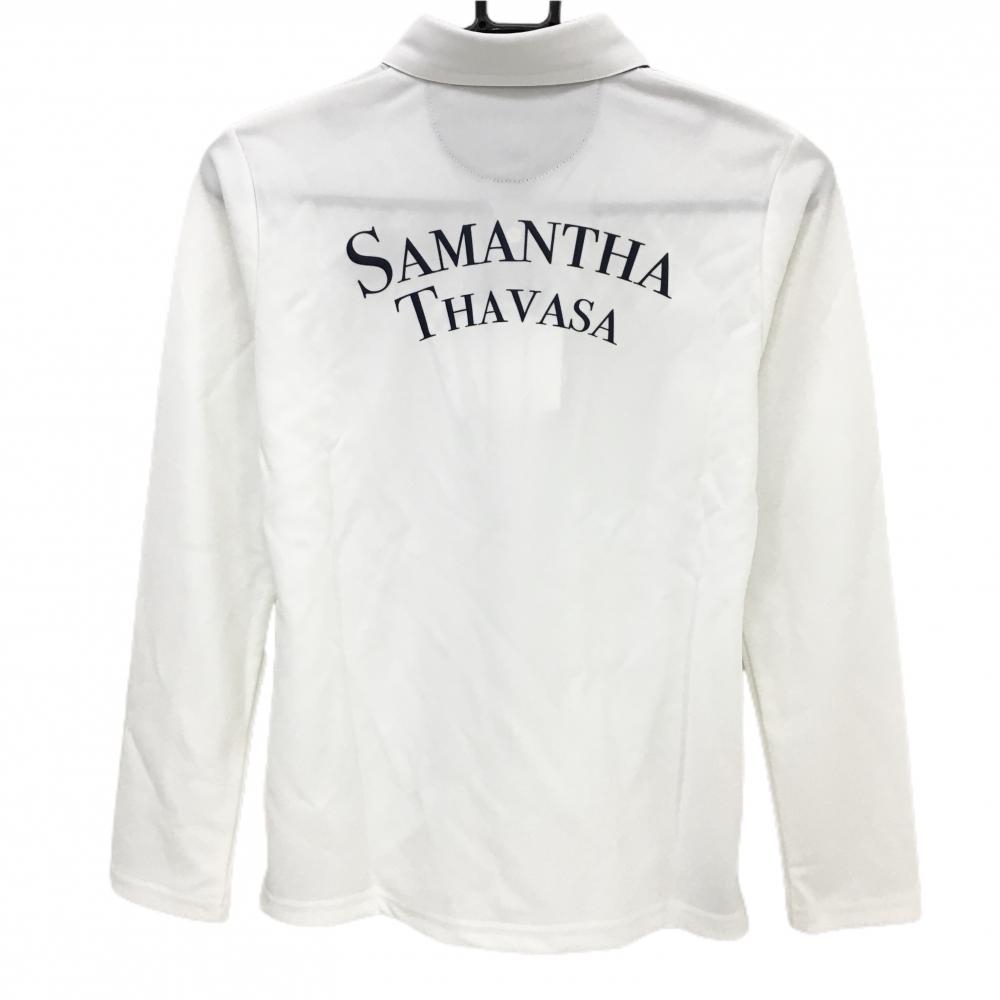 【新品】サマンサタバサNo.7 長袖ポロシャツ 白×ネイビー 背面ロゴプリント レディース 38(M) ゴルフウェア Samantha Thavasa