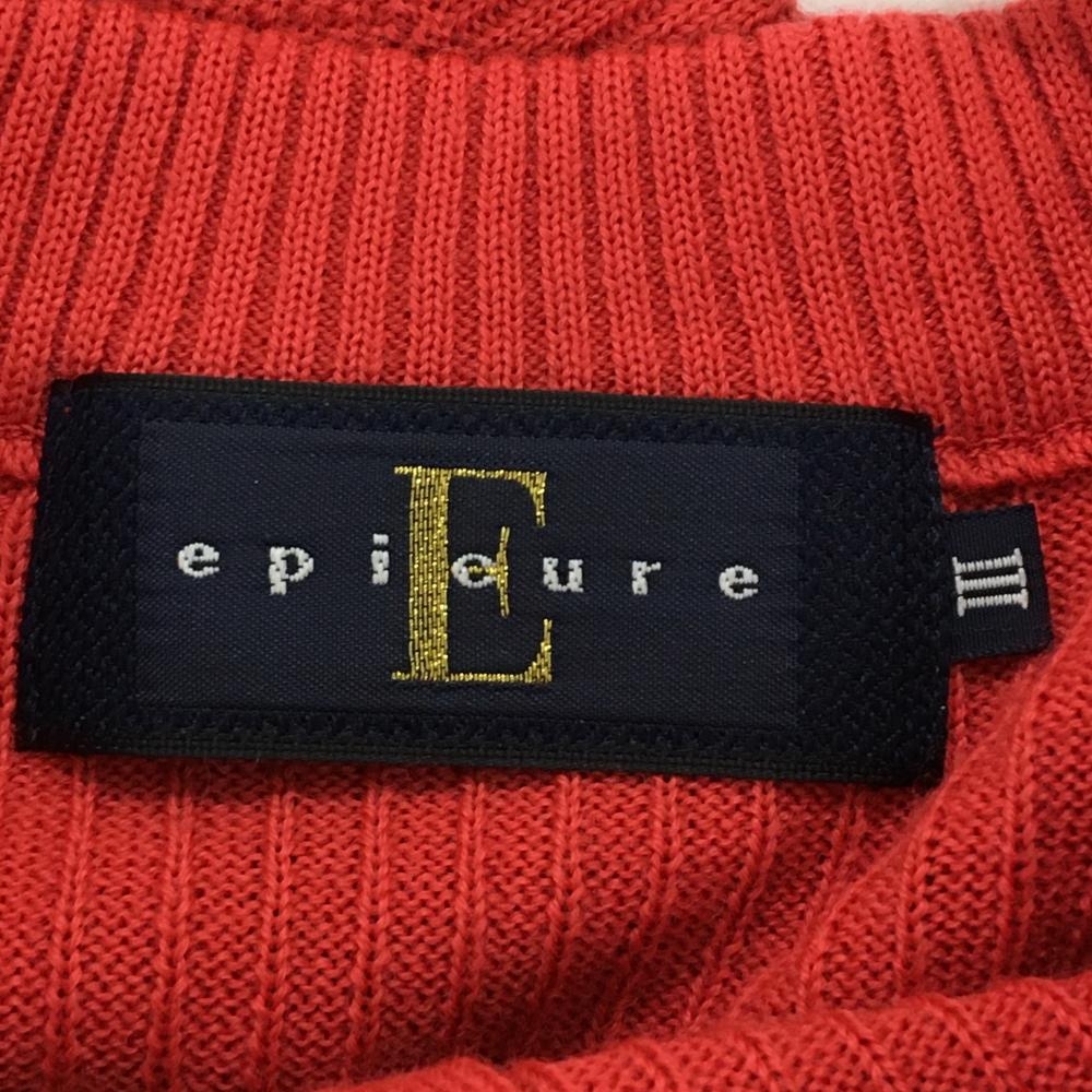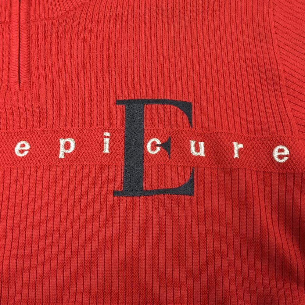 【美品】エピキュール セーター レッド ロゴ刺しゅう ハーフジップ ウール混 ニット メンズ Ⅲ ゴルフウェア epieure