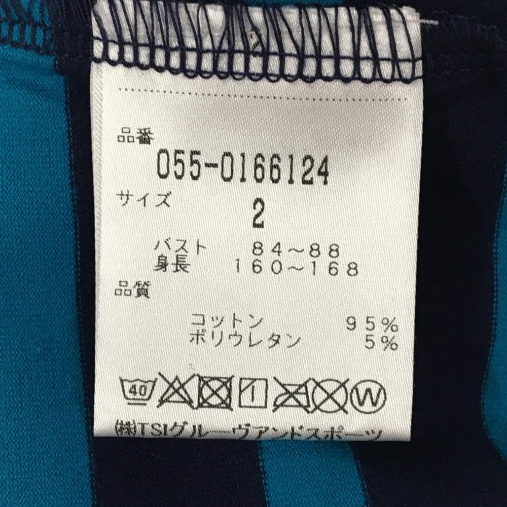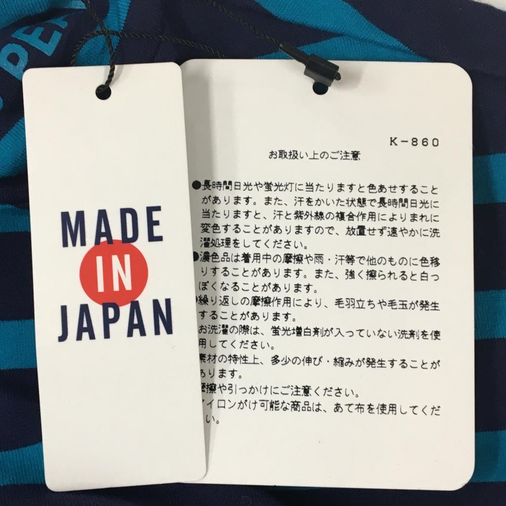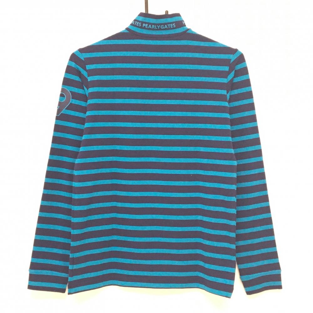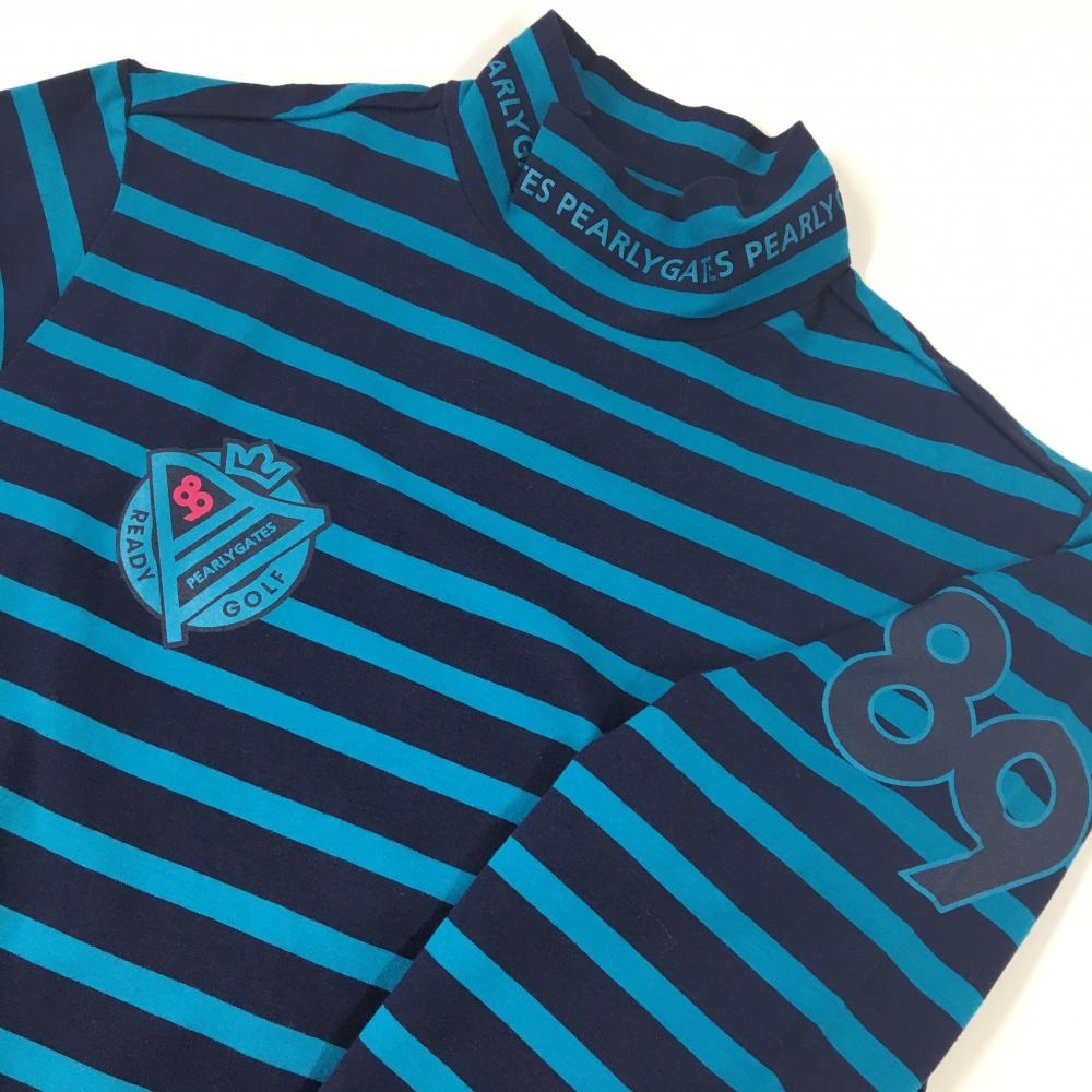 【新品】パーリーゲイツ 長袖ハイネックシャツ ネイビー×ライトブルー ボーダー 日本製 レディース 2(L) ゴルフウェア PEARLY GATES