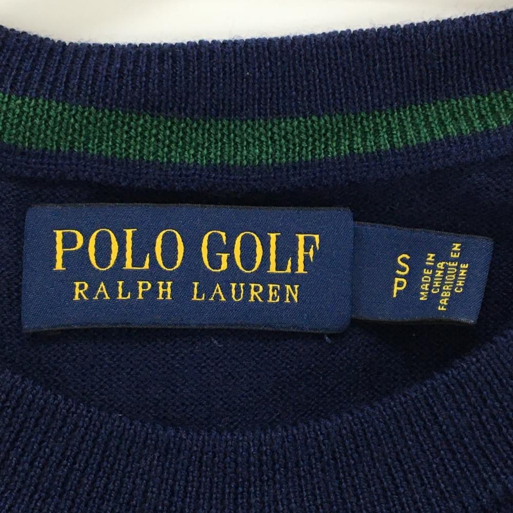 【美品】ポロゴルフ セーター ネイビー ロゴグリーン ウール100% ニット メンズ S ゴルフウェア Ralph Lauren