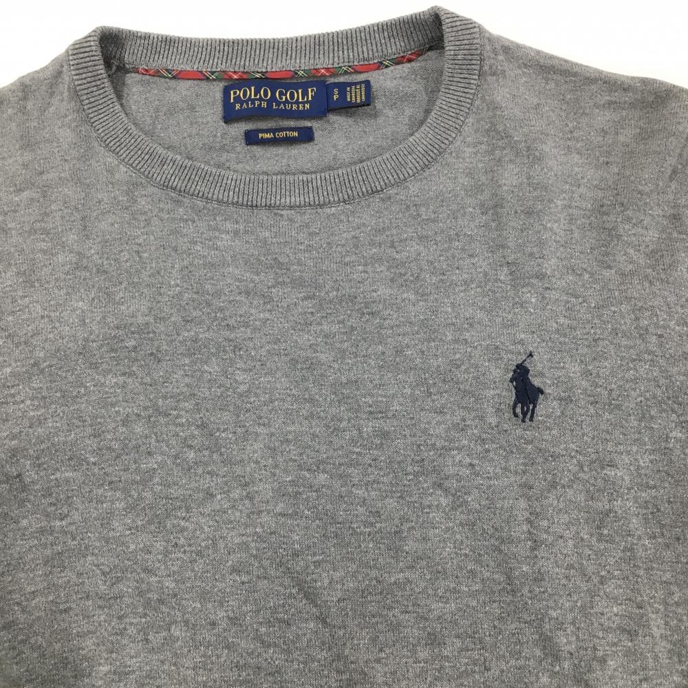 ポロゴルフ セーター グレー ロゴネイビー コットン100% ニット メンズ S ゴルフウェア Ralph Lauren