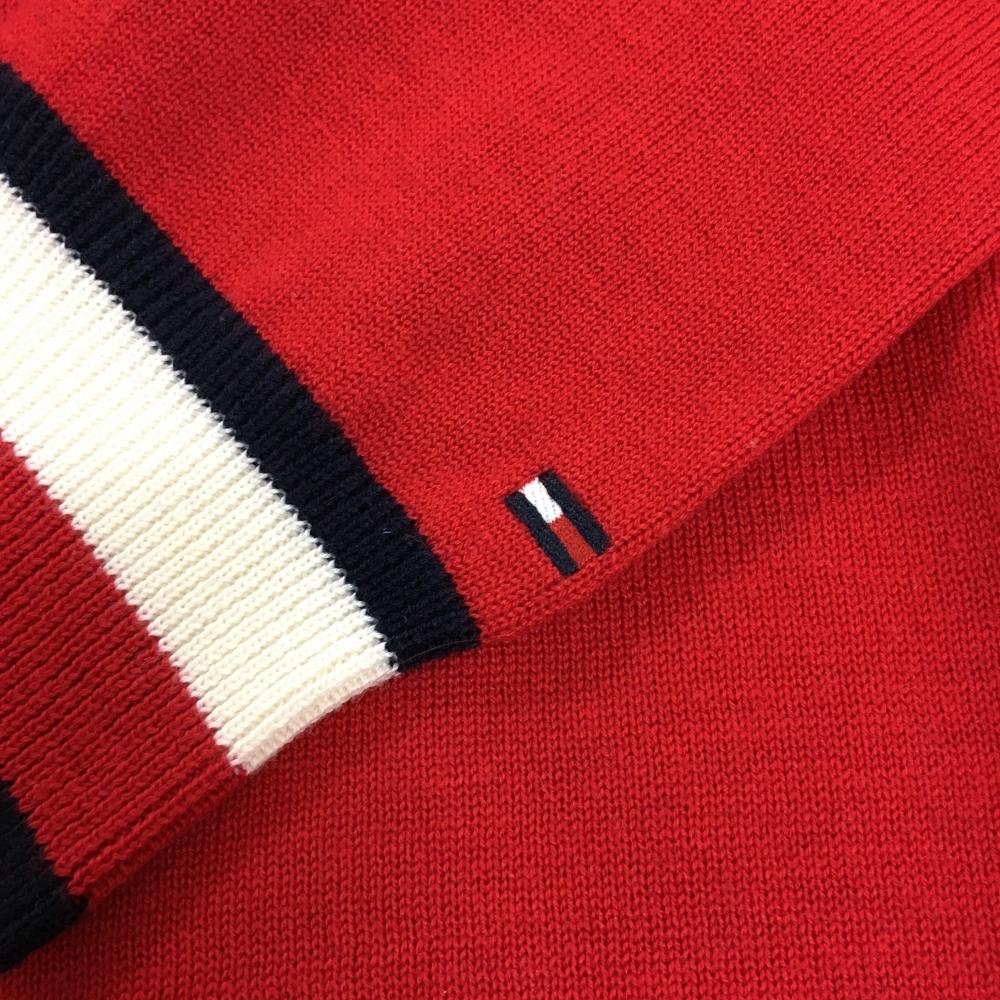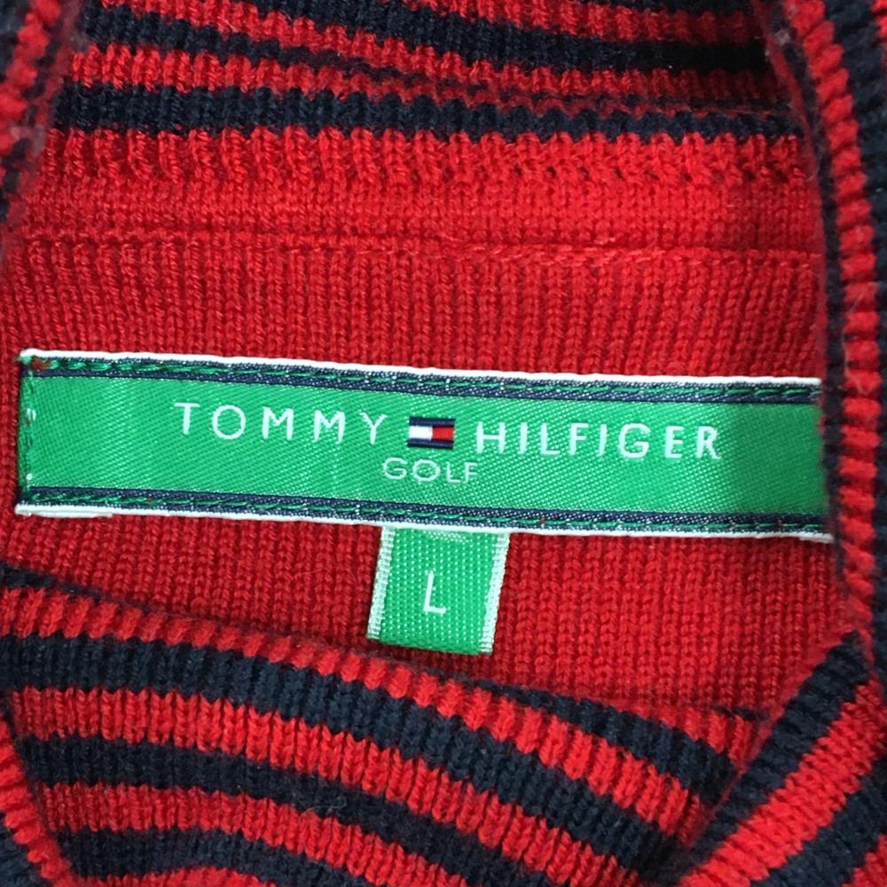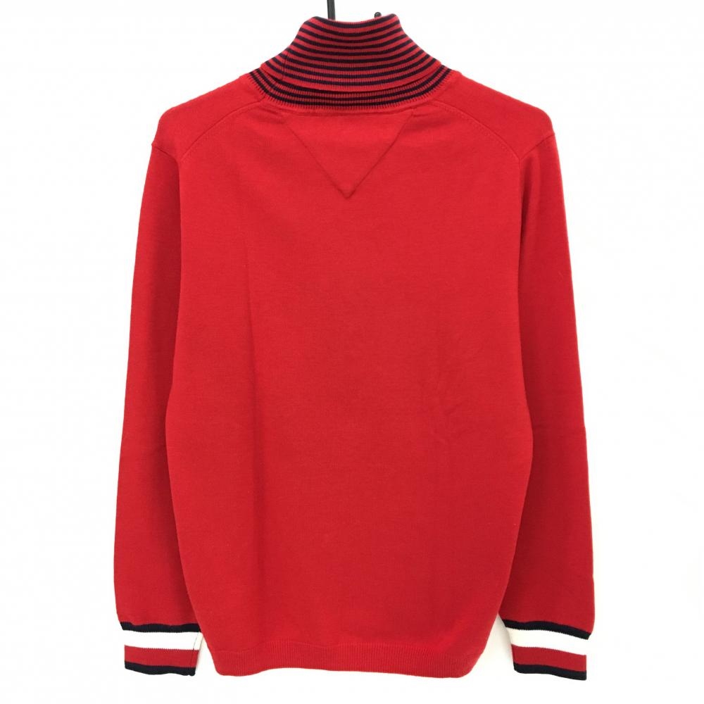 【美品】トミーヒルフィガーゴルフ タートルネックセーター レッド×ネイビー ネックボーダー メンズ L ゴルフウェア Tommy Hilfiger Golf