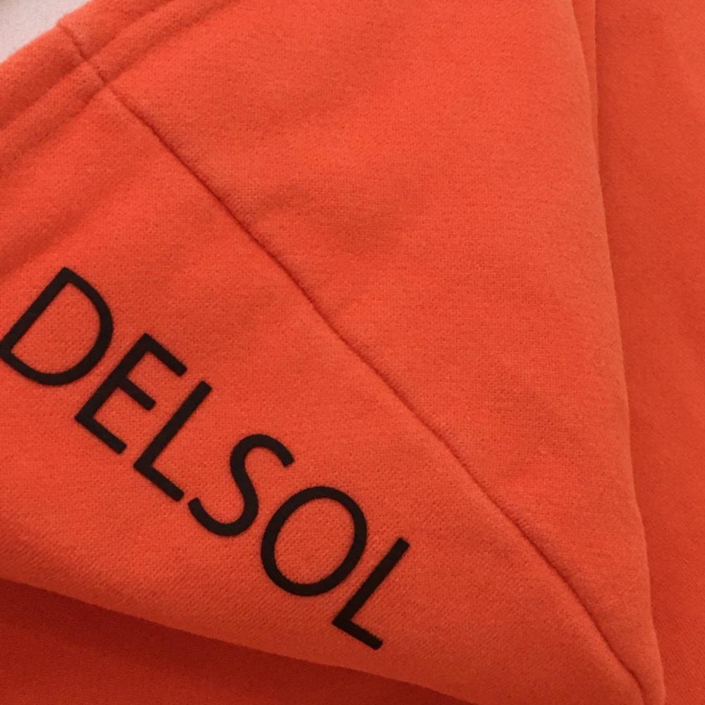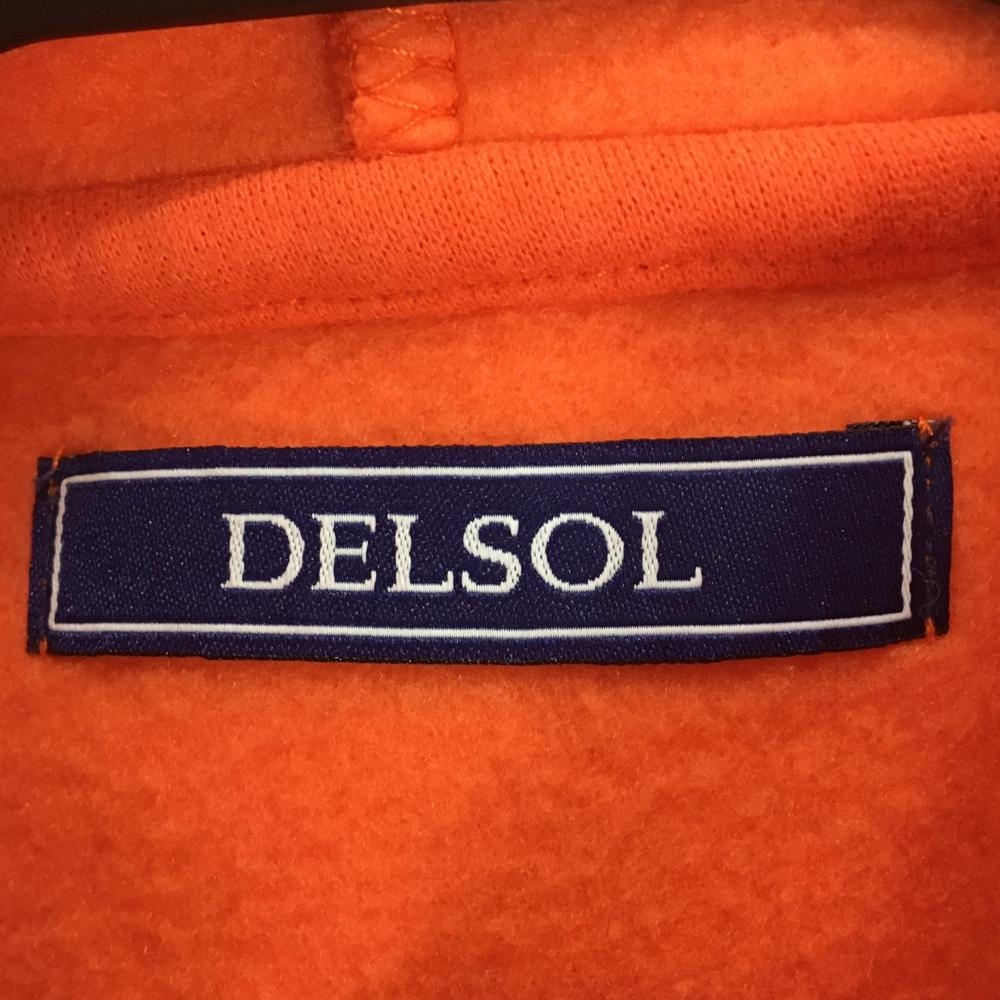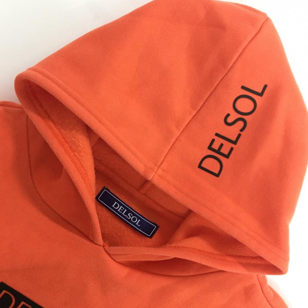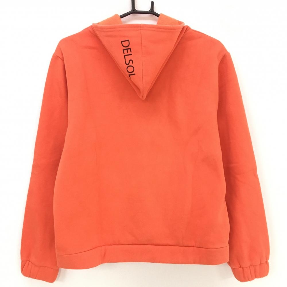 デルソル パーカー オレンジ フロントロゴ黒 裏起毛 トレーナー フード縁・袖口・裾等色褪せ レディース LL ゴルフウェア DELSOL