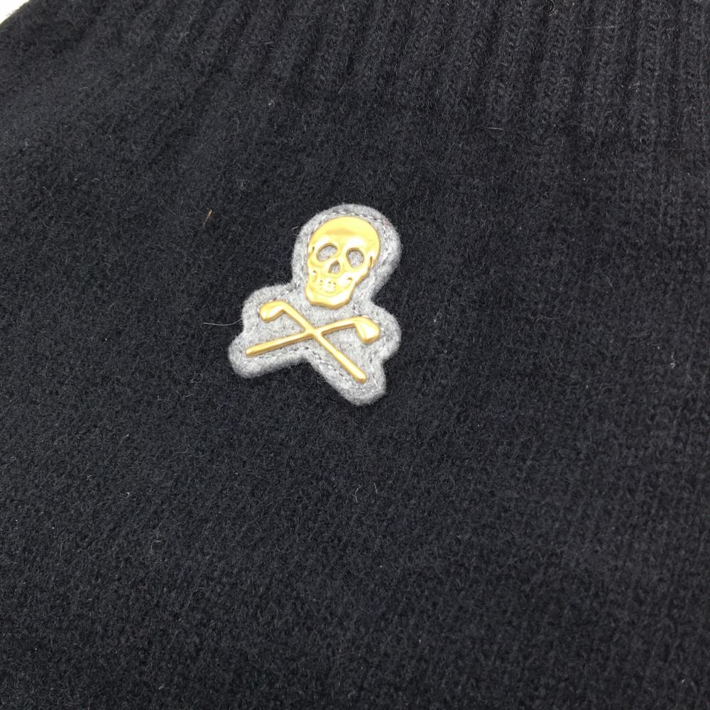 【超美品】マークアンドロナ ニットレッグウォーマー 黒 スカルゴールド ウール混 レディース FREE ゴルフウェア MARK&LONA