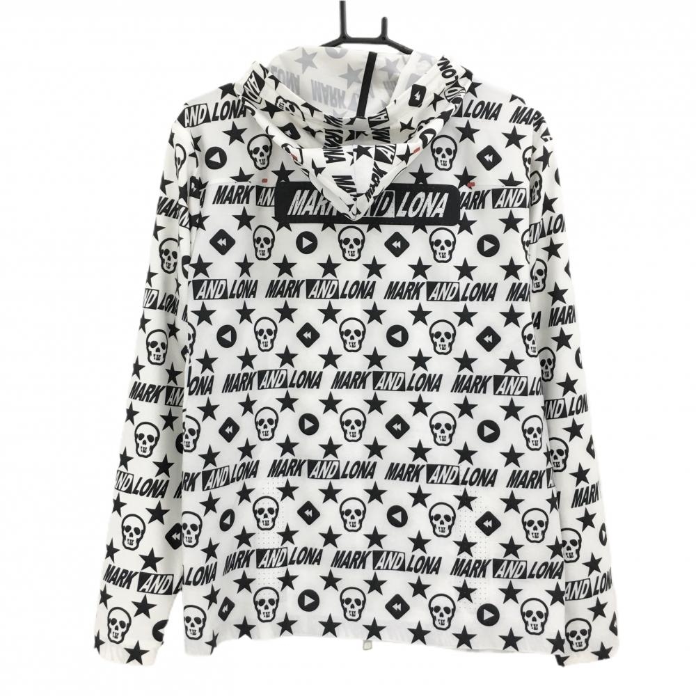 マークアンドロナ ジャケット 白×黒 スカル×星総柄 メンズ 46(M) ゴルフウェア MARK&LONA