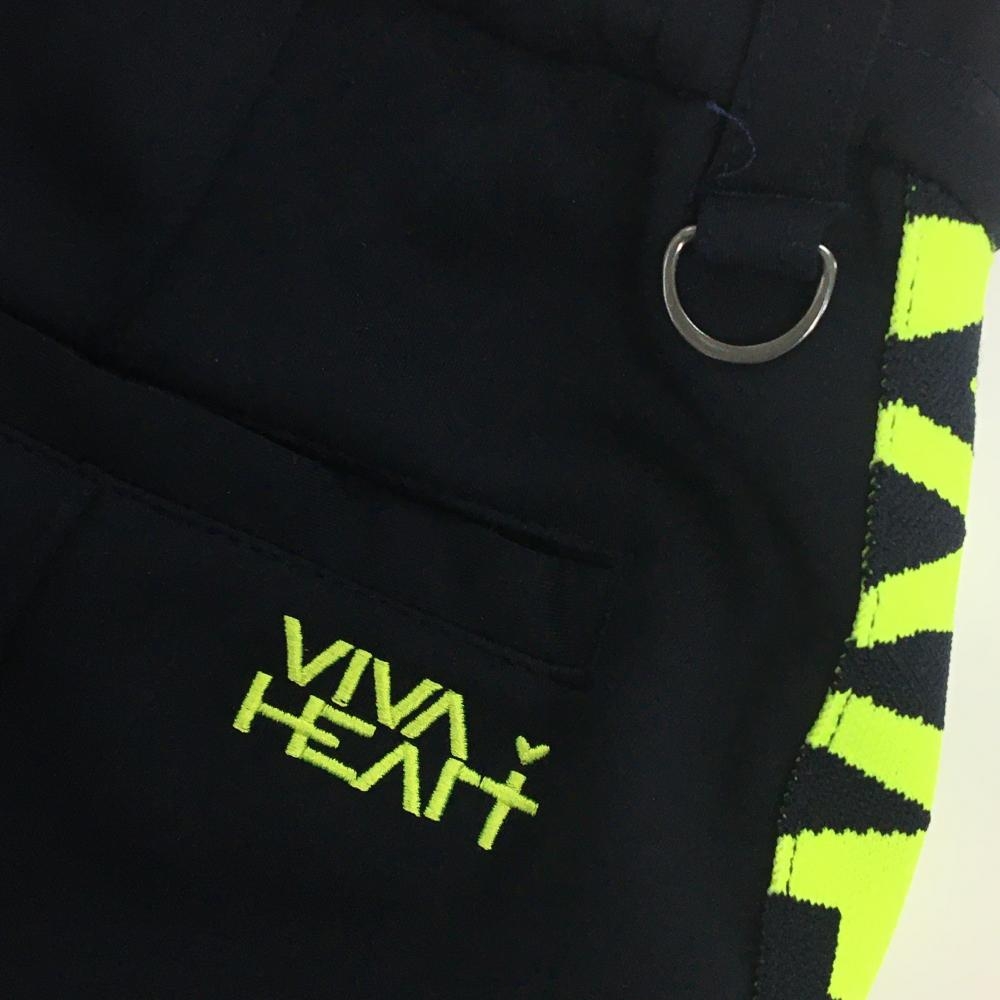 【美品】ビバハート スカート ダークネイビー×ライトグリーン サイドロゴ ストレッチ レディース 40(M) ゴルフウェア VIVA HEART