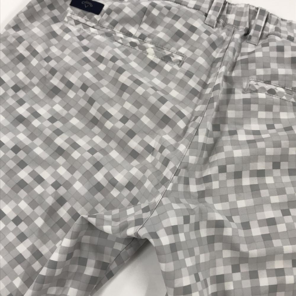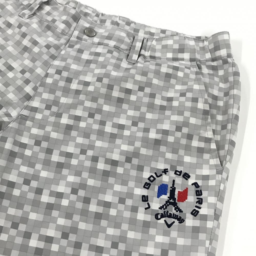 キャロウェイ パンツ ライトグレー×白 ブロックチェック ロゴ刺しゅう 裏地メッシュ メンズ M ゴルフウェア Callaway
