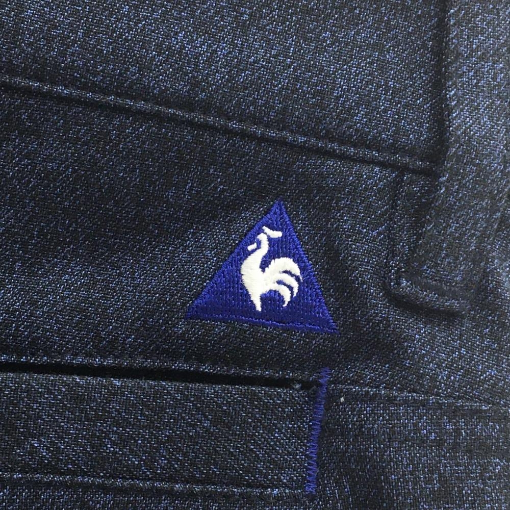 【美品】ルコックゴルフ パンツ 杢ネイビー バックロゴ 裏微起毛 メンズ 85 ゴルフウェア le coq sportif
