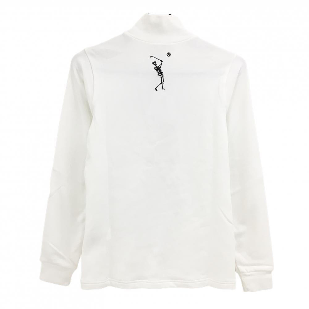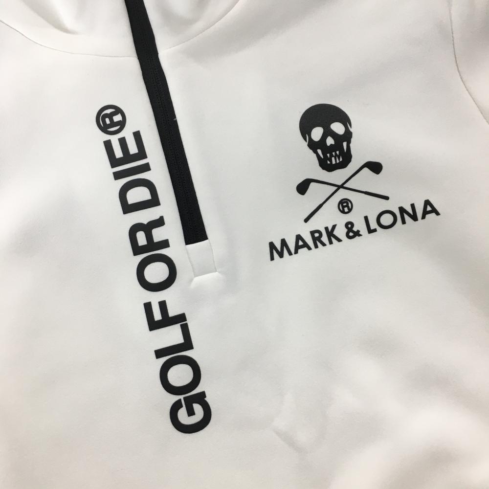 【新品】マークアンドロナ 長袖ハイネックシャツ 白×黒 ハーフジップ スカル 裏起毛 レディース 38(M) ゴルフウェア MARK&LONA