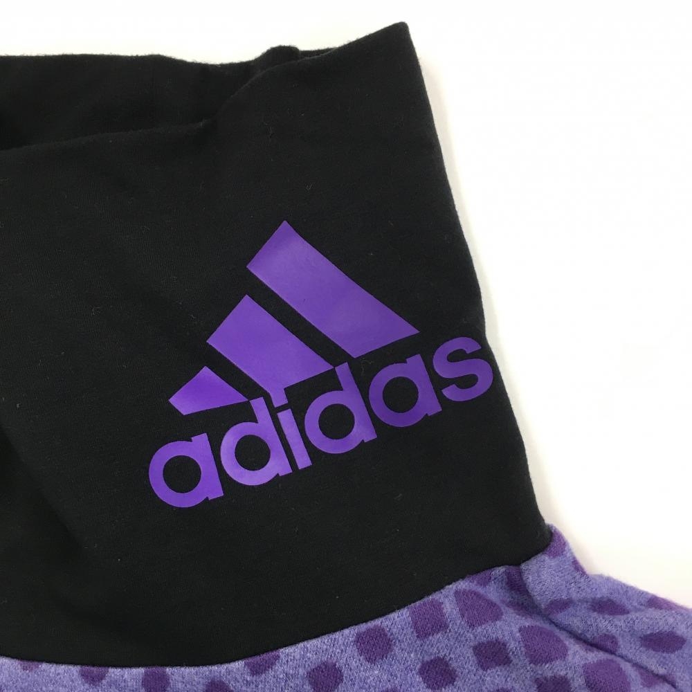 【美品】アディダス 長袖ハイネックシャツ パープル×白 総柄 微起毛 メンズ O/XG ゴルフウェア adidas