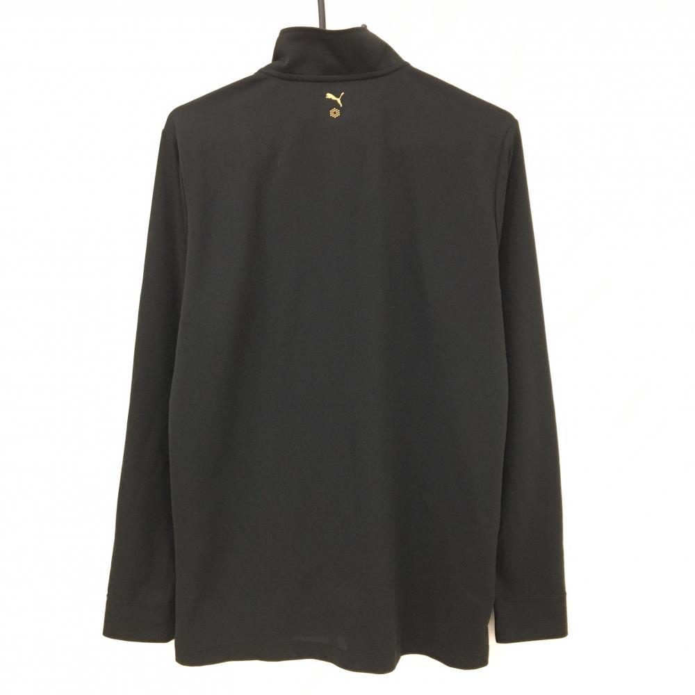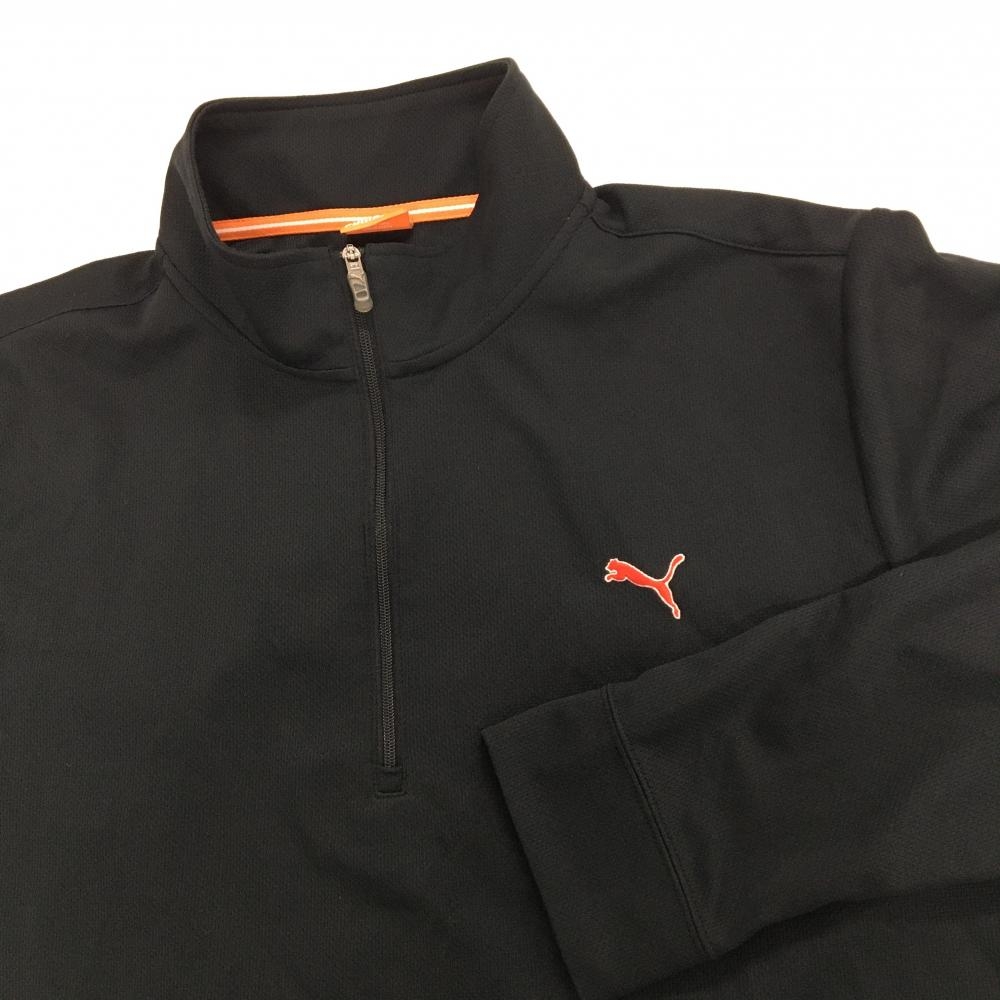 【美品】プーマ 長袖ハイネックシャツ 黒 ロゴ刺しゅうレッド ハーフジップ メンズ O ゴルフウェア PUMA