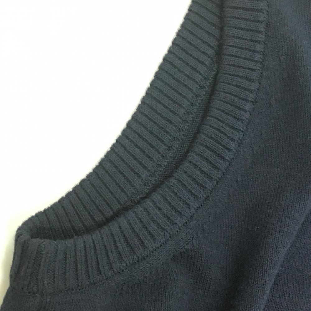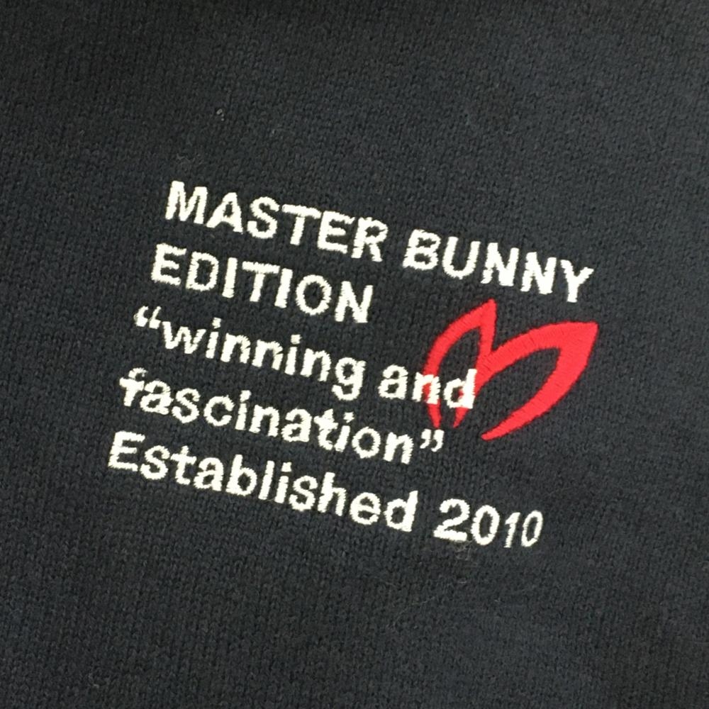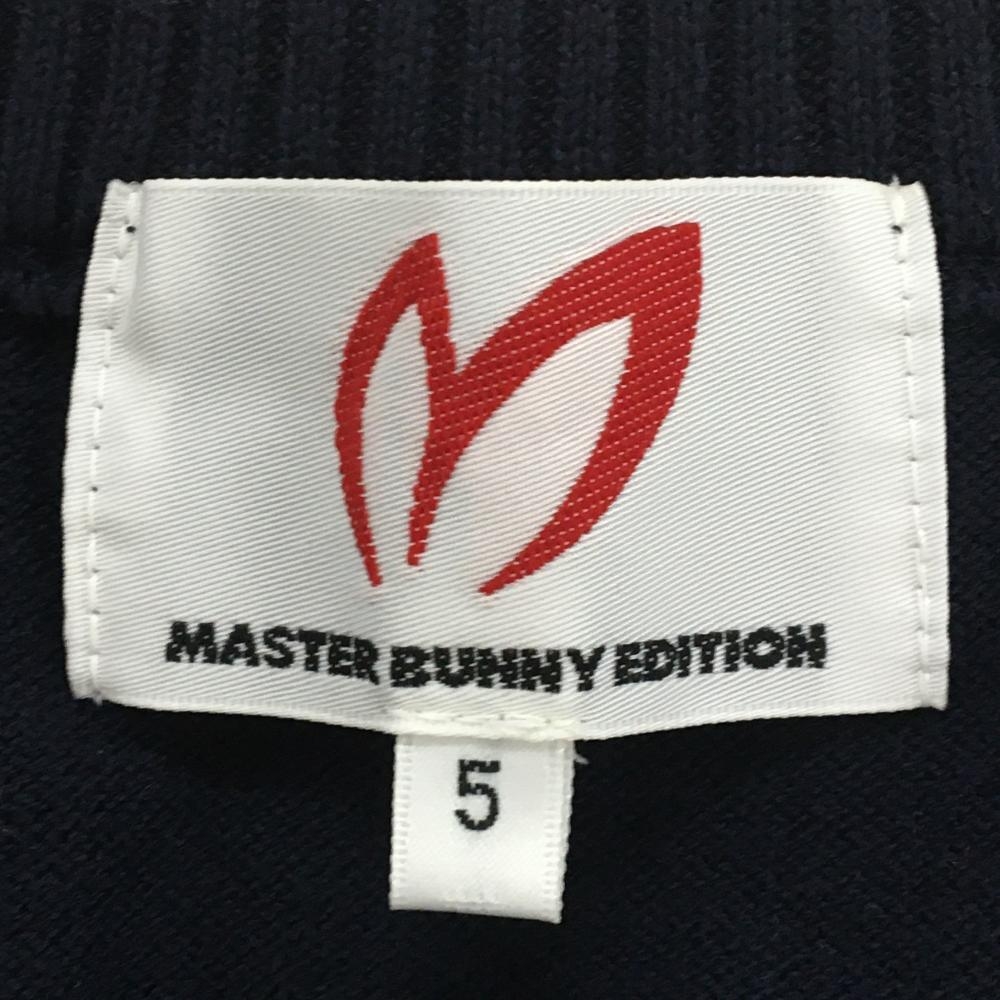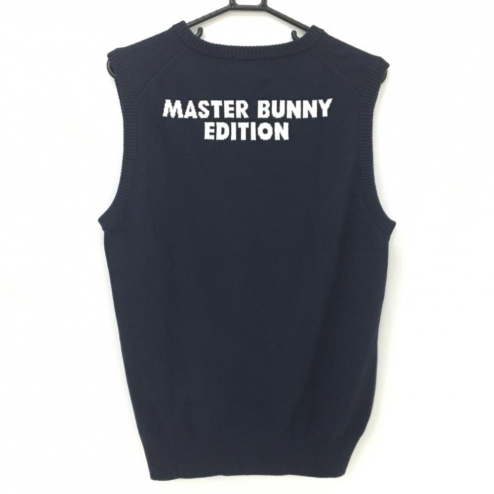 【美品】マスターバニー ニットベスト ネイビー バックロゴ コットン・カシミヤ メンズ 5(L) ゴルフウェア MASTER BUNNY EDITION