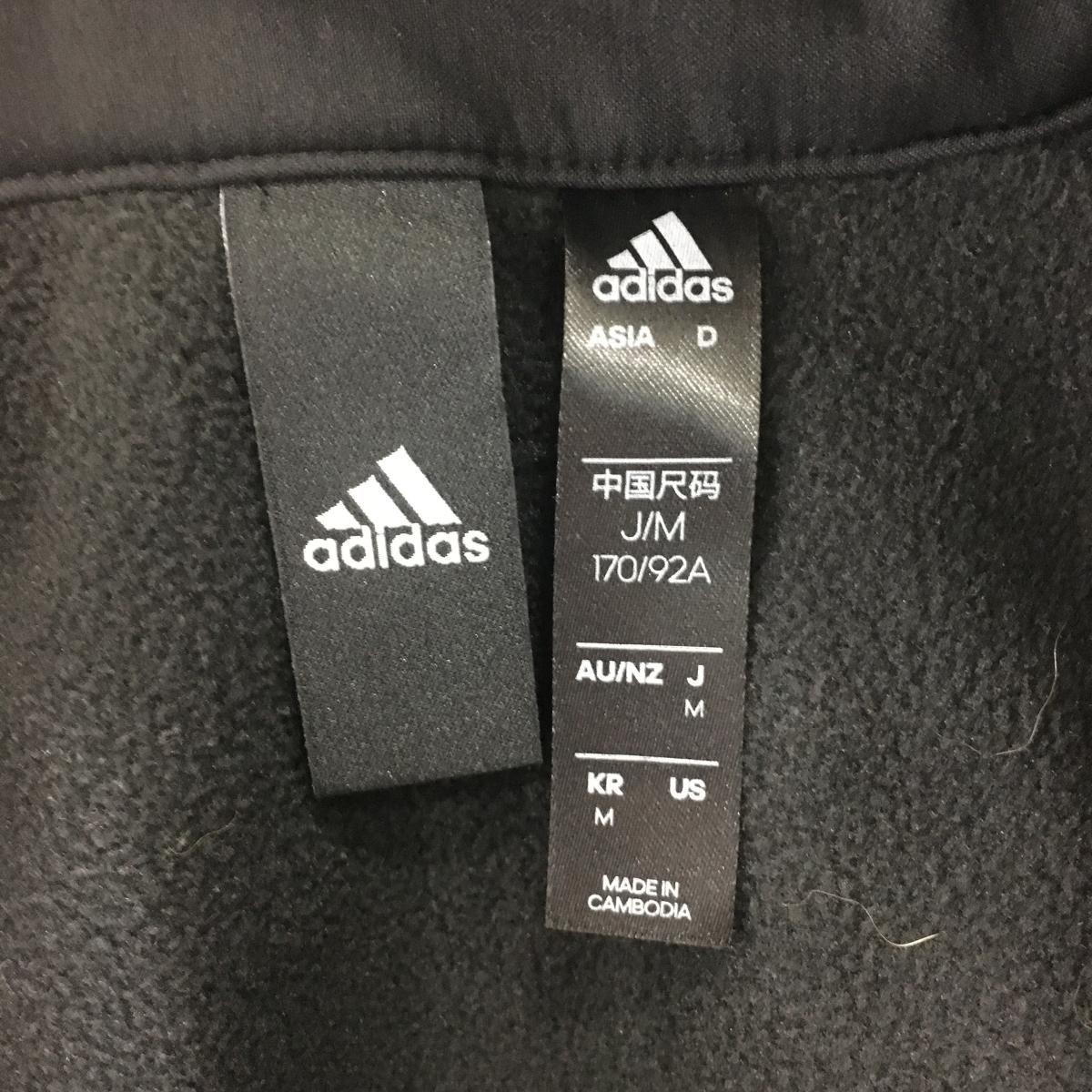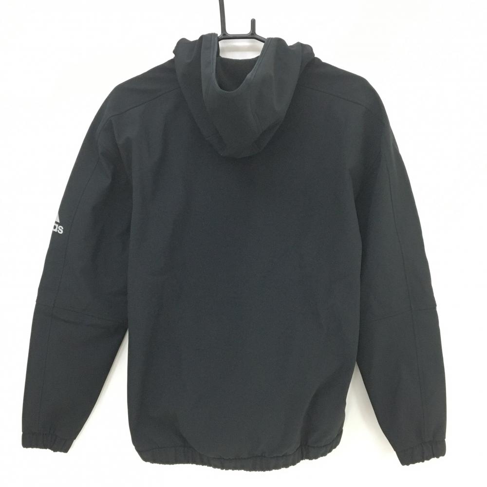 【美品】アディダス ジップパーカー 黒 袖ロゴ 胸ポケット 裏起毛 メンズ M ゴルフウェア adidas