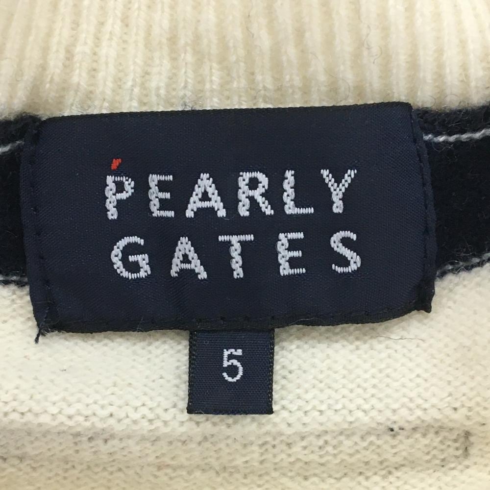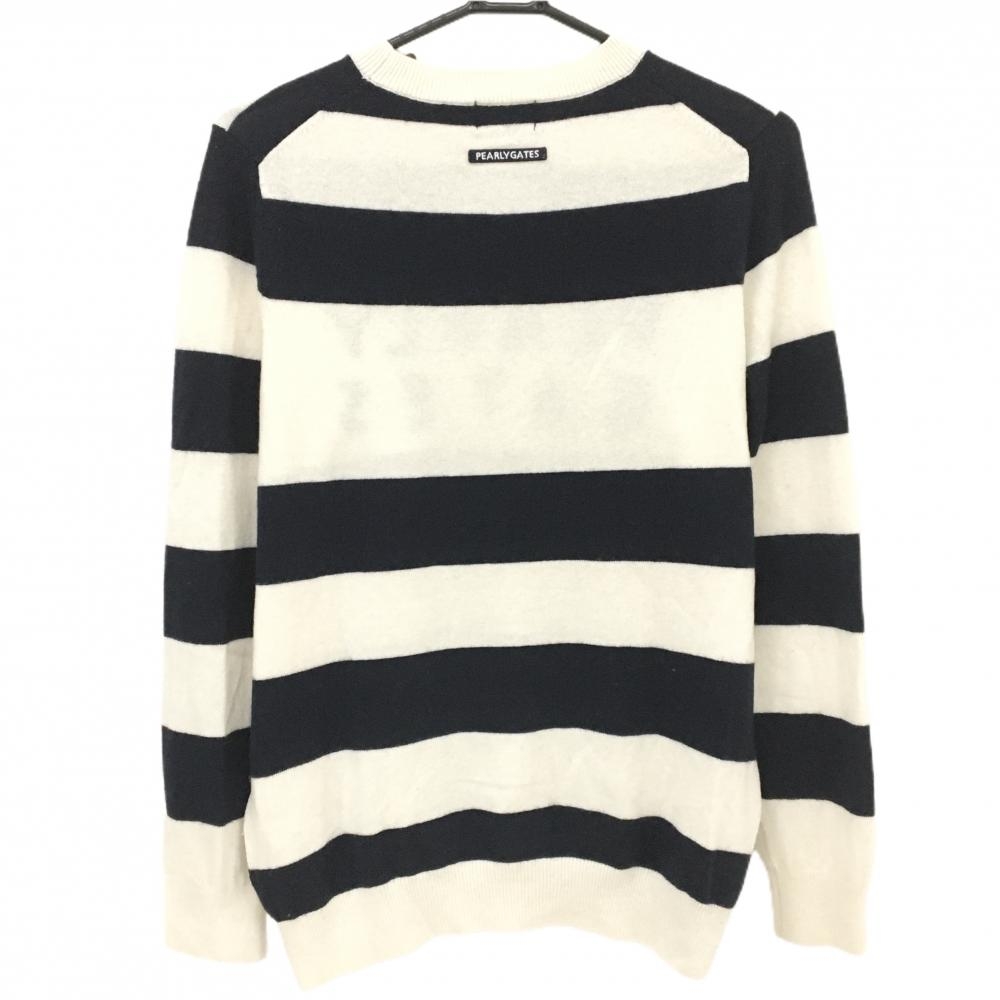 【美品】パーリーゲイツ セーター 白×ネイビー ボーダー カシミヤ混 ニット メンズ 5(L) ゴルフウェア PEARLY GATES