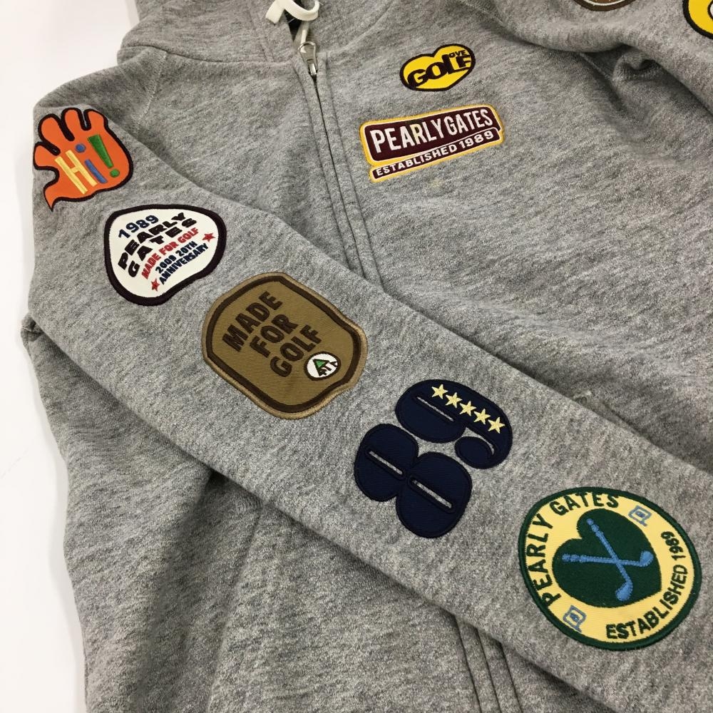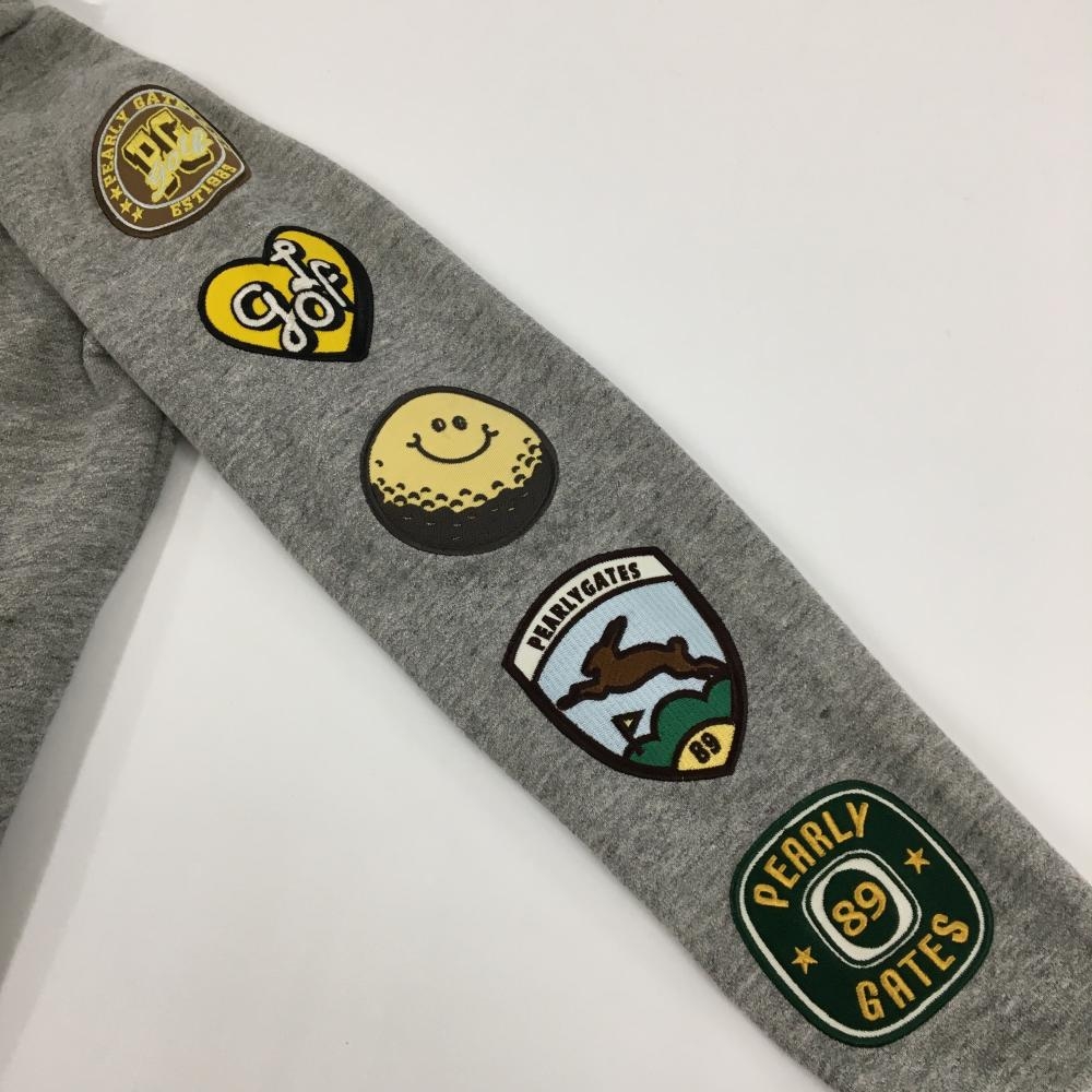 【美品】パーリーゲイツ ジップパーカー 杢グレー ワッペン ジャケット レディース 1(M) ゴルフウェア PEARLY GATES